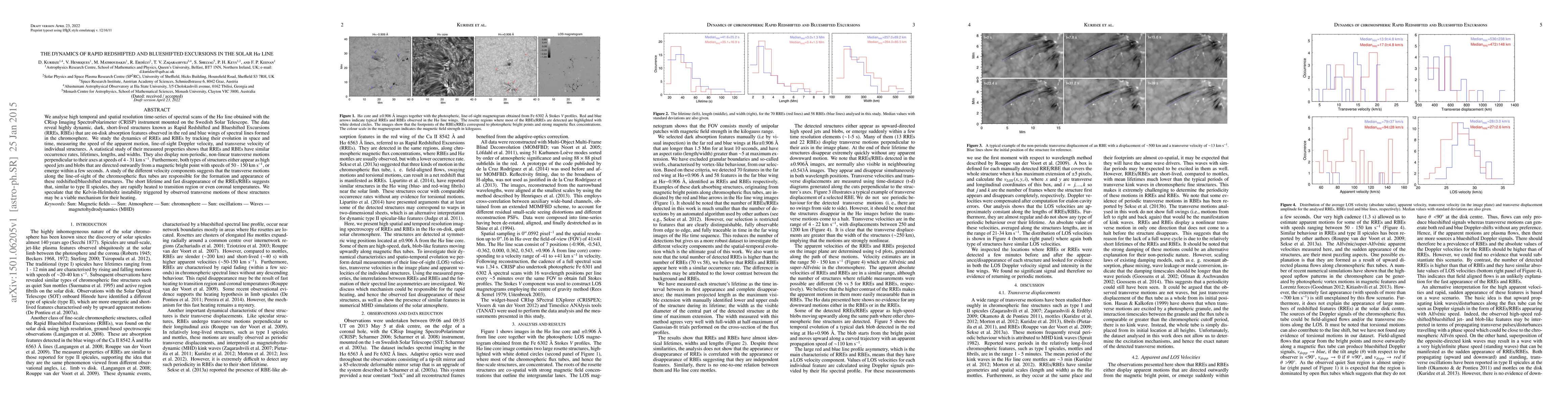 We analyse high temporal and spatial resolution time-series of spectral scans of the Halpha line obtained with the CRisp Imaging SpectroPolarimeter (CRISP) instrument mounted on the Swedish Solar Telescope. The data reveal highly dynamic, dark, short-lived structures known as Rapid Redshifted and Blueshifted Excursions (RREs, RBEs) that are on-disk absorption features observed in the red and blue wings of spectral lines formed in the chromosphere. We study the dynamics of RREs and RBEs by tracking their evolution in space and time, measuring the speed of the apparent motion, line-of-sight Doppler velocity, and transverse velocity of individual structures. A statistical study of their measured properties shows that RREs and RBEs have similar occurrence rates, lifetimes, lengths, and widths. They also display non-periodic, non-linear transverse motions perpendicular to their axes at speeds of 4 - 31 km/s. Furthermore, both types of structures either appear as high speed jets and blobs that are directed outwardly from a magnetic bright point with speeds of 50 - 150 km/s, or emerge within a few seconds. A study of the different velocity components suggests that the transverse motions along the line-of-sight of the chromospheric flux tubes are responsible for the formation and appearance of these redshifted/blueshifted structures. The short lifetime and fast disappearance of the RREs/RBEs suggests that, similar to type II spicules, they are rapidly heated to transition region or even coronal temperatures. We speculate that the Kelvin-Helmholtz instability triggered by observed transverse motions of these structures may be a viable mechanism for their heating.