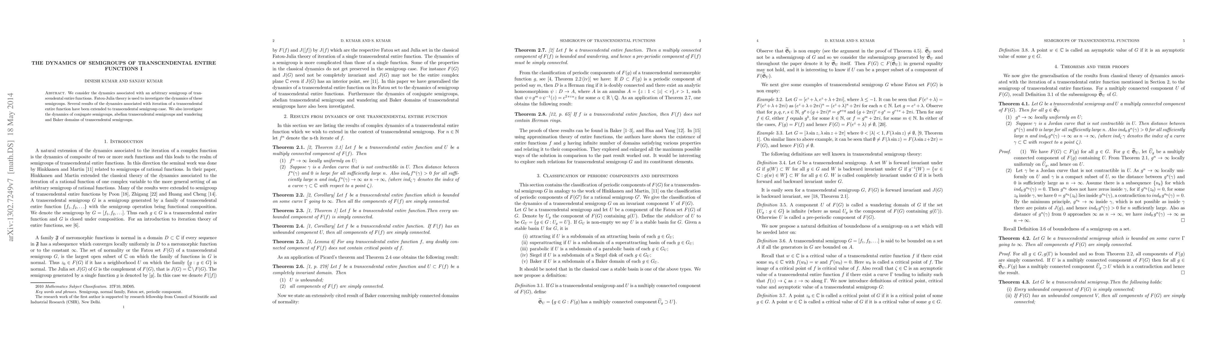 This paper explores the dynamics of semigroups of transcendental entire functions using Fatou-Julia theory, extending known results from individual transcendental entire functions to the semigroup context, and investigates conjugate, Abelian, wandering, and Baker domains within these semigroups.
