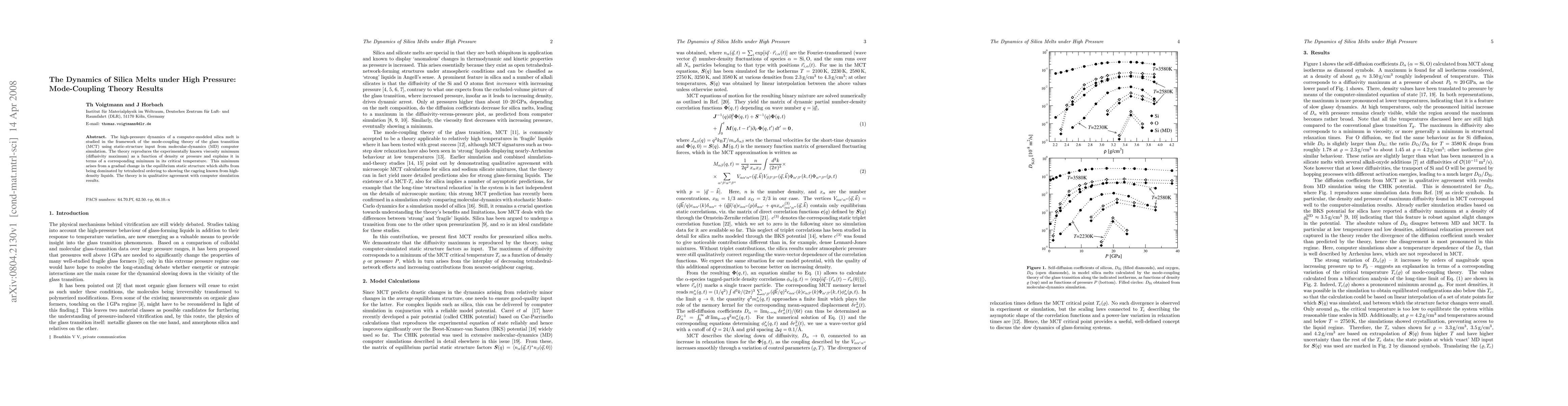 The mode-coupling theory of the glass transition (MCT) explains the experimentally known viscosity minimum in silica melts under high pressure, attributing it to a structural shift from tetrahedral ordering to cageing. The theory aligns qualitatively with molecular-dynamics simulation results.