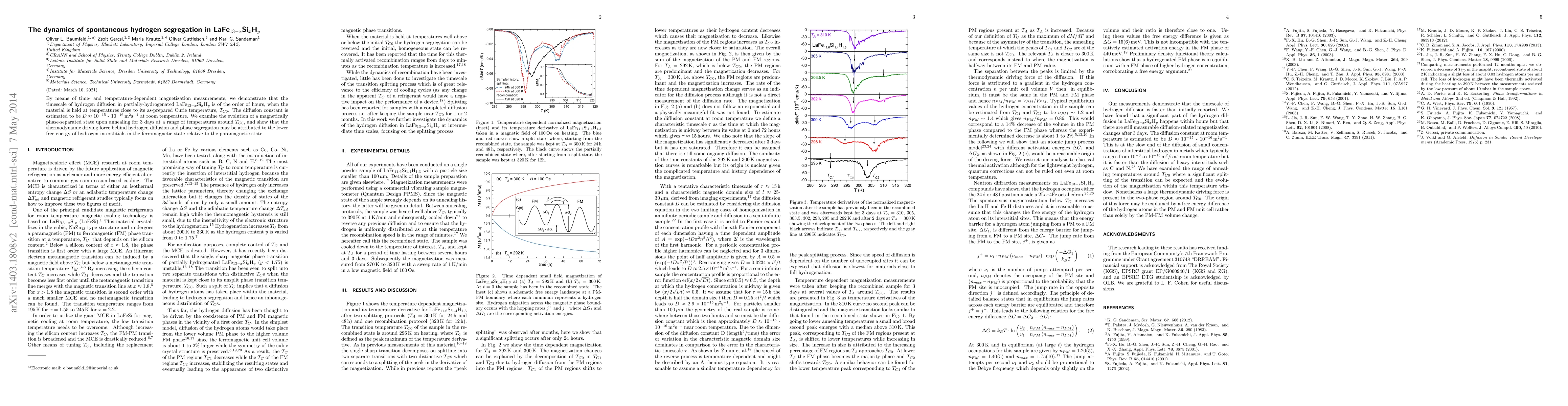 By means of time- and temperature-dependent magnetization measurements, we demonstrate that the timescale of hydrogen diffusion in partially-hydrogenated LaFe$_{13-x}$Si$_x$H$_y$ is of the order of hours, when the material is held at temperatures close to its as-prepared Curie temperature, $T_{C0}$. The diffusion constant is estimated to be $D \approx 10^{-15}$ - $10^{-16}$ m$^2$s$^{-1}$ at room temperature. We examine the evolution of a magnetically phase-separated state upon annealing for 3 days at a range of temperatures around $T_{C0}$, and show that the thermodynamic driving force behind hydrogen diffusion and phase segregation may be attributed to the lower free energy of hydrogen interstitials in the ferromagnetic state relative to the paramagnetic state.