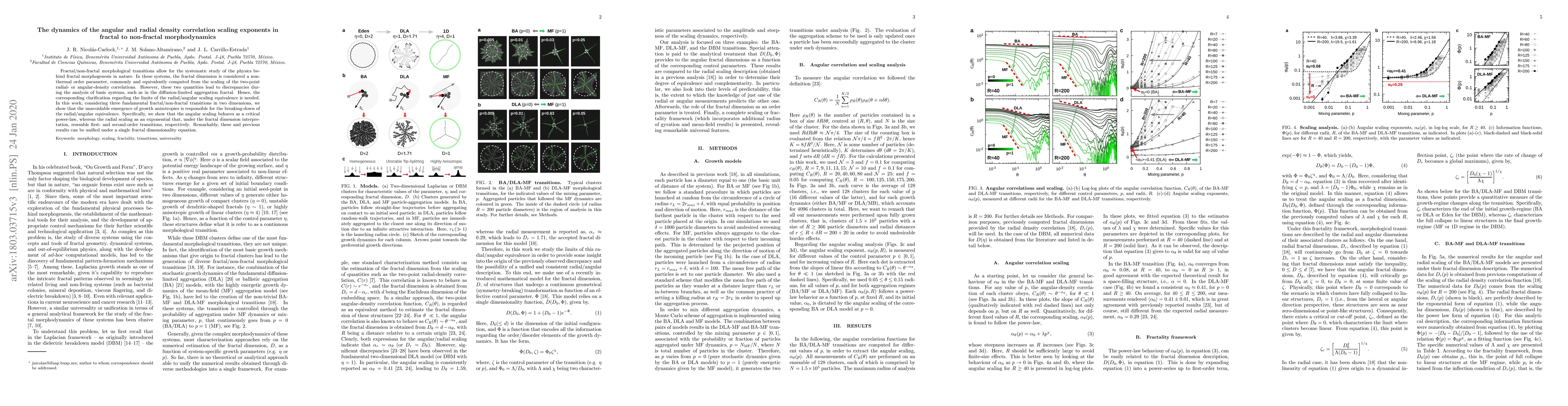This paper investigates the discrepancies between radial and angular density correlation scaling exponents in fractal to non-fractal morphological transitions, revealing that growth anisotropies break the equivalence between these two scaling methods. It demonstrates that angular scaling follows a critical power-law while radial scaling follows an exponential, unifying these findings under a single fractal dimensionality equation.
