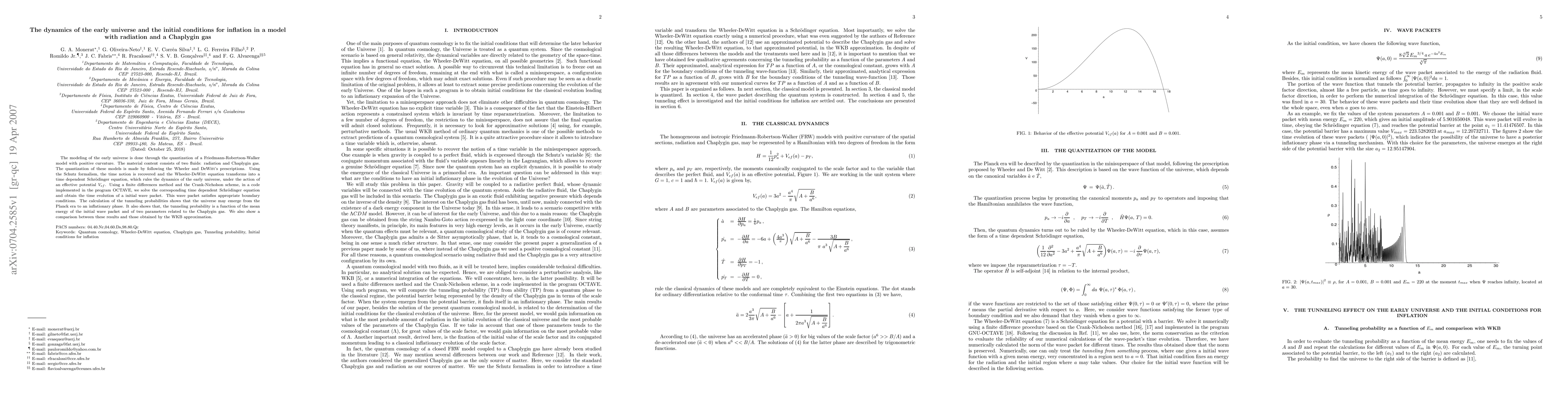 The modeling of the early universe is done through the quantization of a Friedmann-Robertson-Walker model with positive curvature. The material content consists of two fluids: radiation and Chaplygin gas. The quantization of these models is made by following the Wheeler and DeWitt's prescriptions. Using the Schutz formalism, the time notion is recovered and the Wheeler-DeWitt equation transforms into a time dependent Schr\"{o}dinger equation, which rules the dynamics of the early universe, under the action of an effective potential $V_{ef}$. Using a finite differences method and the Crank-Nicholson scheme, in a code implemented in the program OCTAVE, we solve the corresponding time dependent Schr\"{o}dinger equation and obtain the time evolution of a initial wave packet. This wave packet satisfies appropriate boundary conditions. The calculation of the tunneling probabilities shows that the universe may emerge from the Planck era to an inflationary phase. It also shows that, the tunneling probability is a function of the mean energy of the initial wave packet and of two parameters related to the Chaplygin gas. We also show a comparison between these results and those obtained by the WKB approximation.