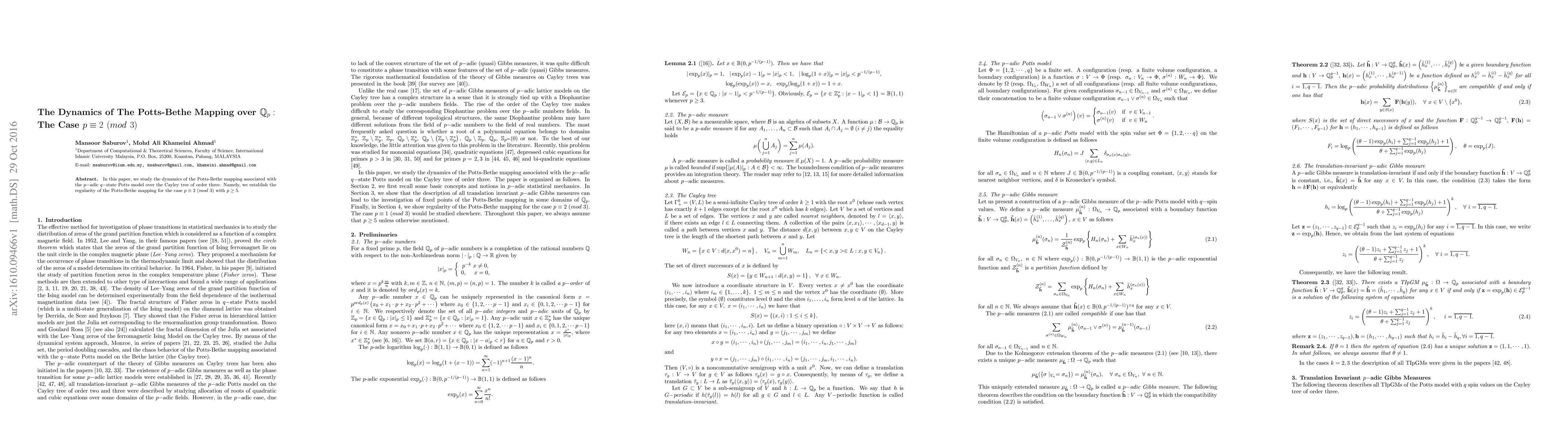 In this paper, we study the dynamics of the Potts-Bethe mapping associated with the $p-$adic $q-$state Potts model over the Cayley tree of order three. Namely, we establish the regularity of the Potts-Bethe mapping for the case $p\equiv 2 \ (mod \ 3)$ with $p\geq5$.