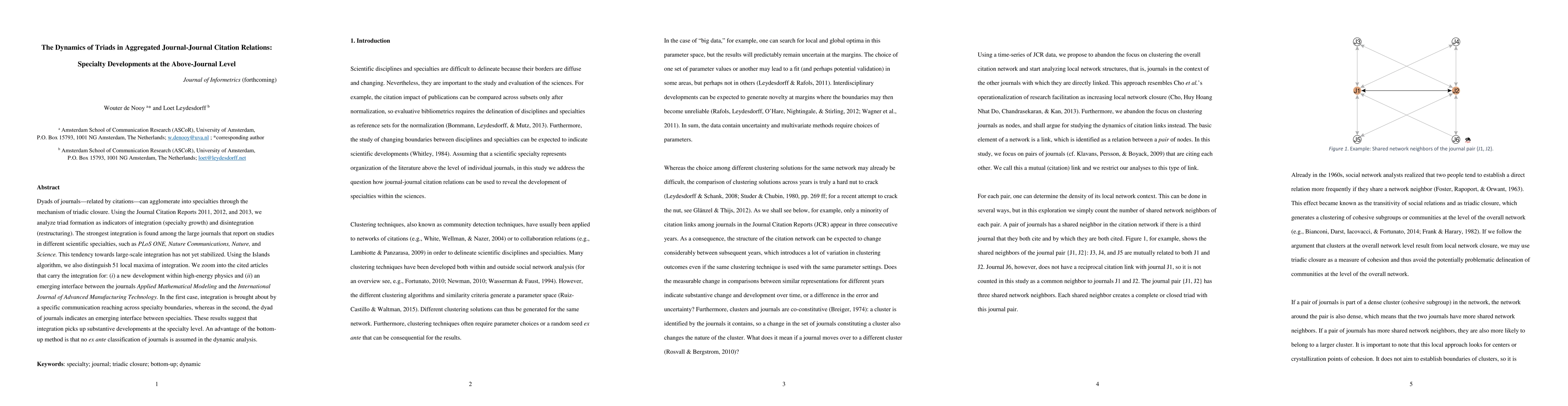 This paper examines how citation relations among journals form specialties through triadic closure, analyzing data from 2011-2013. The study finds strong integration among large journals across different scientific fields, highlighting ongoing specialty growth and restructuring, with notable developments in high-energy physics and an emerging interface between applied mathematics and advanced manufacturing technology.