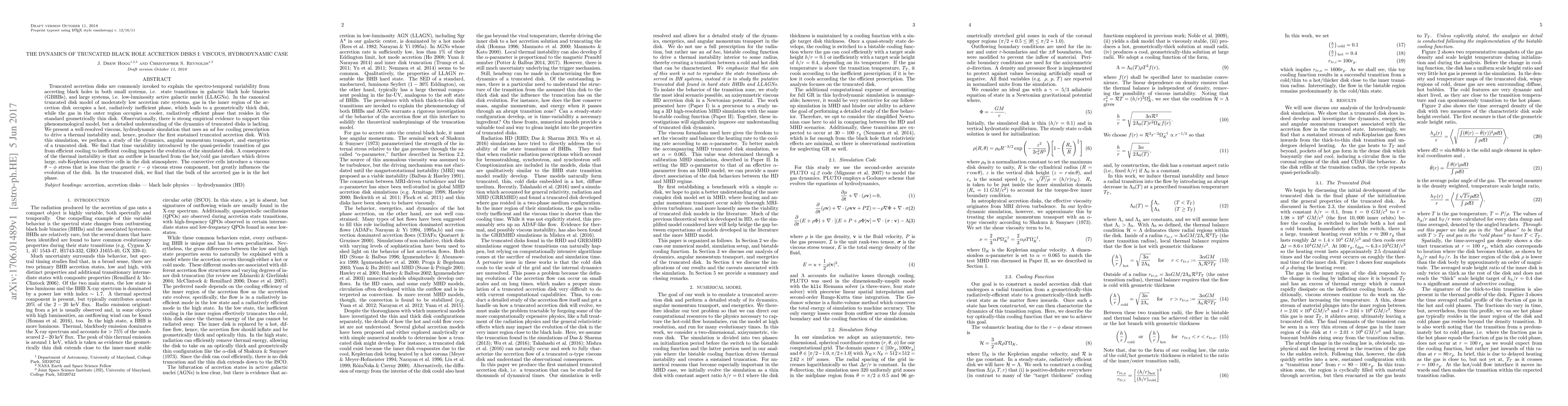 Truncated accretion disks are commonly invoked to explain the spectro-temporal variability from accreting black holes in both small systems, i.e. state transitions in galactic black hole binaries (GBHBs), and large systems, i.e. low-luminosity active galactic nuclei (LLAGNs). In the canonical truncated disk model of moderately low accretion rate systems, gas in the inner region of the accretion disk occupies a hot, radiatively inefficient phase, which leads to a geometrically thick disk, while the gas in the outer region occupies a cooler, radiatively efficient phase that resides in the standard geometrically thin disk. Observationally, there is strong empirical evidence to support this phenomenological model, but a detailed understanding of the dynamics of truncated disks is lacking. We present a well-resolved viscous, hydrodynamic simulation that uses an ad hoc cooling prescription to drive a thermal instability and, hence, produce the first sustained truncated accretion disk. With this simulation, we perform a study of the dynamics, angular momentum transport, and energetics of a truncated disk. We find that time variability introduced by the quasi-periodic transition of gas from efficient cooling to inefficient cooling impacts the evolution of the simulated disk. A consequence of the thermal instability is that an outflow is launched from the hot/cold gas interface which drives large, sub-Keplerian convective cells in the disk atmosphere. The convective cells introduce a viscous $\theta-\phi$ stress that is less than the generic $r-\phi$ viscous stress component, but greatly influences the evolution of the disk. In the truncated disk, we find that the bulk of the accreted gas is in the hot phase.