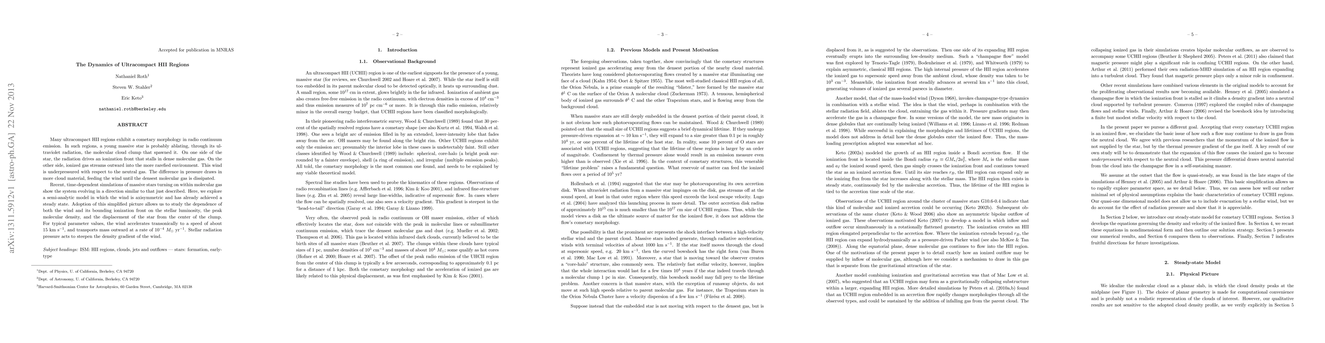 A study of ultracompact HII regions reveals a cometary morphology driven by the interaction between a young massive star's radiation and its molecular cloud surroundings. The simulation shows that stellar radiation pressure accelerates the wind to 15 km/s and transports mass outward at a rate of 10^-4 solar masses per year.