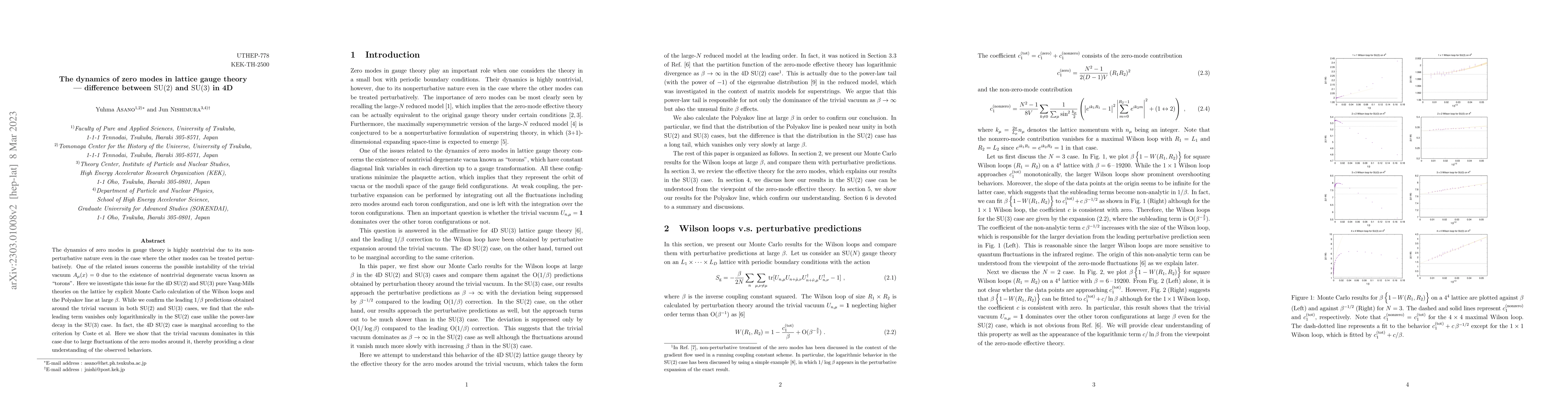 The dynamics of zero modes in gauge theory is highly nontrivial due to its nonperturbative nature even in the case where the other modes can be treated perturbatively. One of the related issues concerns the possible instability of the trivial vacuum $A_\mu(x)=0$ due to the existence of nontrivial degenerate vacua known as "torons". Here we investigate this issue for the 4D SU(2) and SU(3) pure Yang-Mills theories on the lattice by explicit Monte Carlo calculation of the Wilson loops and the Polyakov line at large $\beta$. While we confirm the leading $1/\beta$ predictions obtained around the trivial vacuum in both SU(2) and SU(3) cases, we find that the subleading term vanishes only logarithmically in the SU(2) case unlike the power-law decay in the SU(3) case. In fact, the 4D SU(2) case is marginal according to the criterion by Coste et al. Here we show that the trivial vacuum dominates in this case due to large fluctuations of the zero modes around it, thereby providing a clear understanding of the observed behaviors.