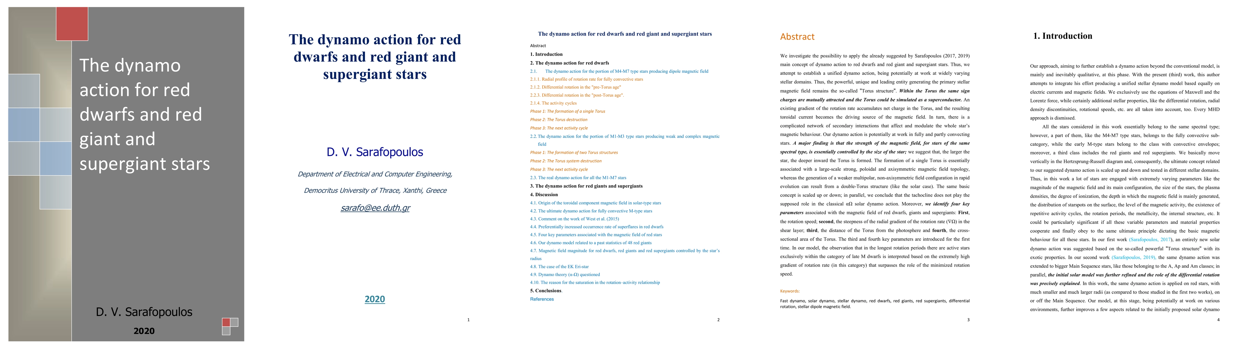 We investigate the possibility to apply the already suggested by Sarafopoulos (2017, 2019) main concept of dynamo action to red dwarfs and red giant and supergiant stars. Thus, we attempt to establish a unified dynamo action, being potentially at work at widely varying stellar domains. Thus, the powerful, unique and leading entity generating the primary stellar magnetic field remains the so-called Torus structure. Within the Torus the same sign charges are mutually attracted and the Torus could be simulated as a superconductor. An existing gradient of the rotation rate accumulates net charge in the Torus, and the resulting toroidal current becomes the driving source of the magnetic field. In turn, there is a complicated network of secondary interactions that affect and modulate the whole star's magnetic behaviour. Our dynamo action is potentially at work in fully and partly convecting stars. A major finding is that the strength of the magnetic field, for stars of the same spectral type, is essentially controlled by the size of the star; we suggest that, the larger the star, the deeper inward the Torus is formed. The formation of a single Torus is essentially associated with a large-scale strong, poloidal and axisymmetric magnetic field topology, whereas the generation of a weaker multipolar, non-axisymmetric field configuration in rapid evolution can result from a double-Torus structure (like the solar case). The same basic concept is scaled up or down. Moreover, we identify four key parameters associated with the magnetic field of red dwarfs, giants and supergiants: First, the rotation speed; second, the steepness of the radial gradient of the rotation rate in the shear layer; third, the distance of the Torus from the photosphere and fourth, the cross-sectional area of the Torus. The third and fourth key parameters are introduced for the first time.