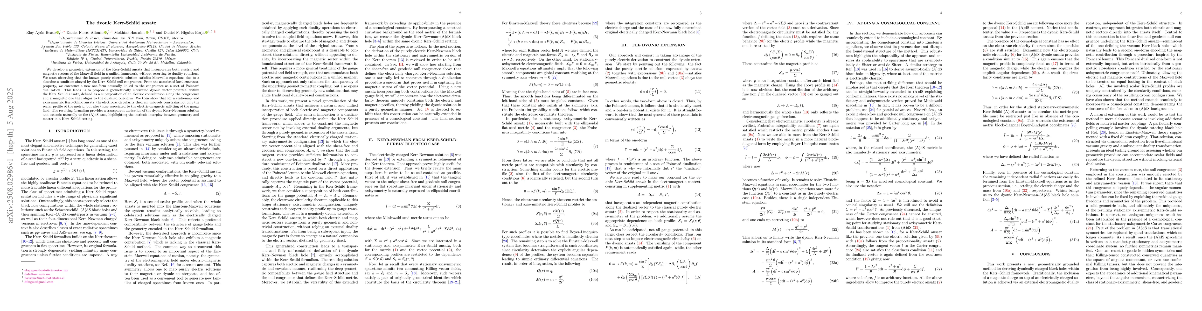 We develop a geometric extension of the Kerr-Schild ansatz that incorporates both electric and magnetic sectors of the Maxwell field in a unified framework, without resorting to duality rotations. We start observing that the known purely electric solution satisfies Maxwell's equations due to a closedness condition obeyed by the Kerr-Schild null congruence. From the associated local exactness property, we construct a new one-form naturally linked to the congruence as a sort of Poincar\'e dualization. This leads us to propose a geometrically motivated dyonic vector potential within the Kerr-Schild ansatz, defined as a superposition of an electric contribution along the congruence and a magnetic one that aligns to the dualized one-form. We then show that for a stationary and axisymmetric Kerr-Schild ansatz, the electrovac circularity theorem uniquely constrains not only the scalar profile of the metric, but also those associated to the electric-magnetic splitting of the gauge field. The resulting formalism provides a transparent derivation of the dyonic Kerr-Newman solution and extends naturally to the (A)dS case, highlighting the intrinsic interplay between geometry and matter in a Kerr-Schild setting.