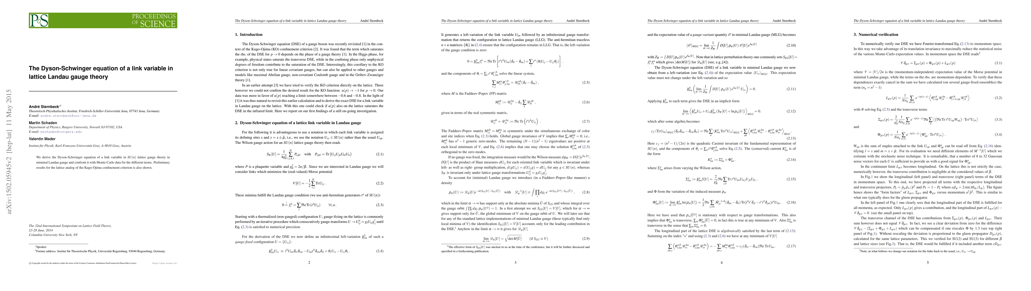 This paper derives the Dyson-Schwinger equation for a link variable in SU(n) lattice gauge theory using the minimal Landau gauge and compares its terms with Monte-Carlo data. Preliminary results on the lattice analog of the Kugo-Ojima confinement criterion are also presented.