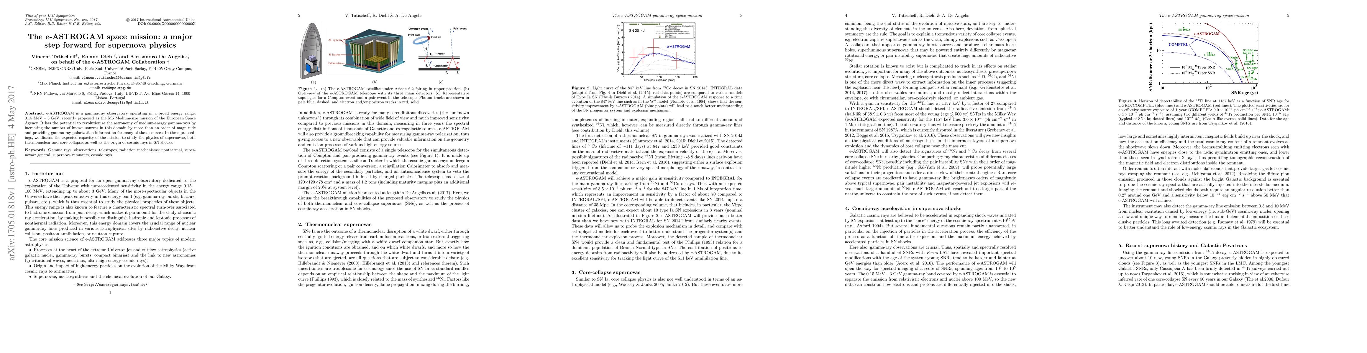e-ASTROGAM is a gamma-ray observatory operating in a broad energy range, 0.15 MeV - 3 GeV, recently proposed as the M5 Medium-size mission of the European Space Agency. It has the potential to revolutionize the astronomy of medium-energy gamma-rays by increasing the number of known sources in this domain by more than an order of magnitude and providing gamma-ray polarization information for many of these sources. In these proceedings, we discuss the expected capacity of the mission to study the physics of supernovae, both thermonuclear and core-collapse, as well as the origin of cosmic rays in supernova shocks.