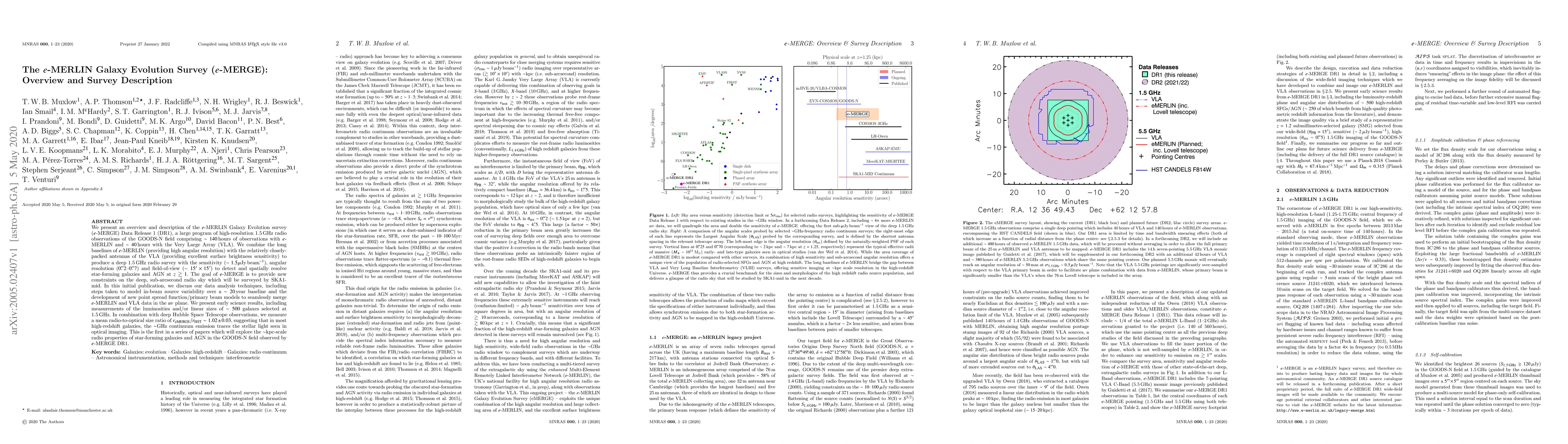 The e-MERGE survey utilized high-resolution 1.5 GHz radio observations from e-MERLIN and the VLA, combining their strengths to produce a deep survey with sensitivity ~1.5μJy beam⁻¹, angular resolution 0.2