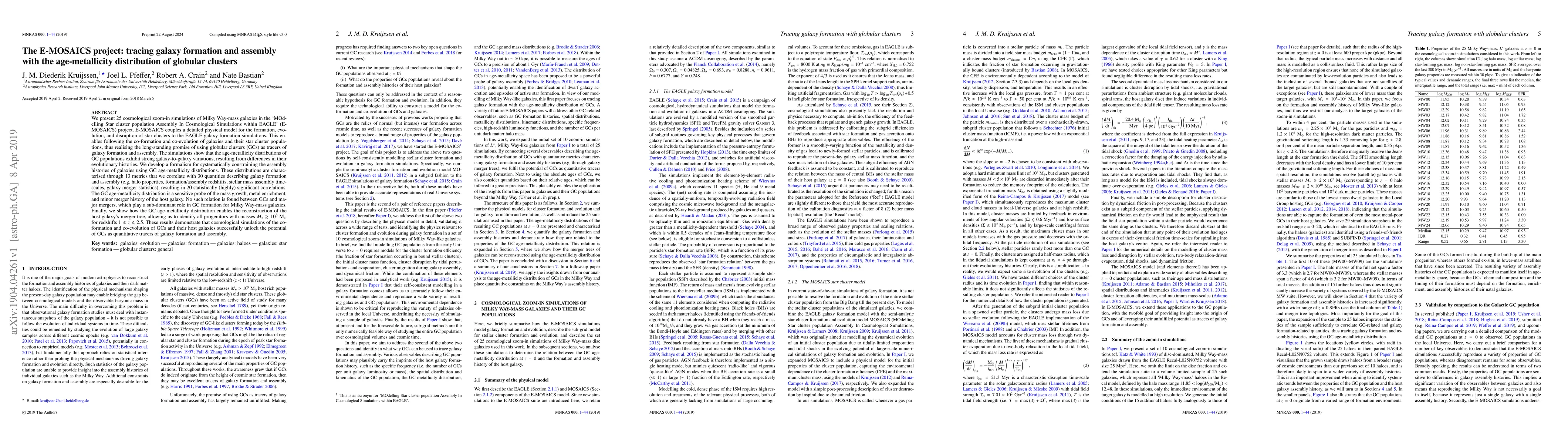 The E-MOSAICS project uses 25 cosmological simulations to study Milky Way-mass galaxies, coupling star cluster formation with EAGLE simulations. The age-metallicity distribution of globular clusters reveals significant galaxy-to-galaxy variations, providing insights into galaxy formation and assembly, and enabling reconstruction of galaxy merger histories.