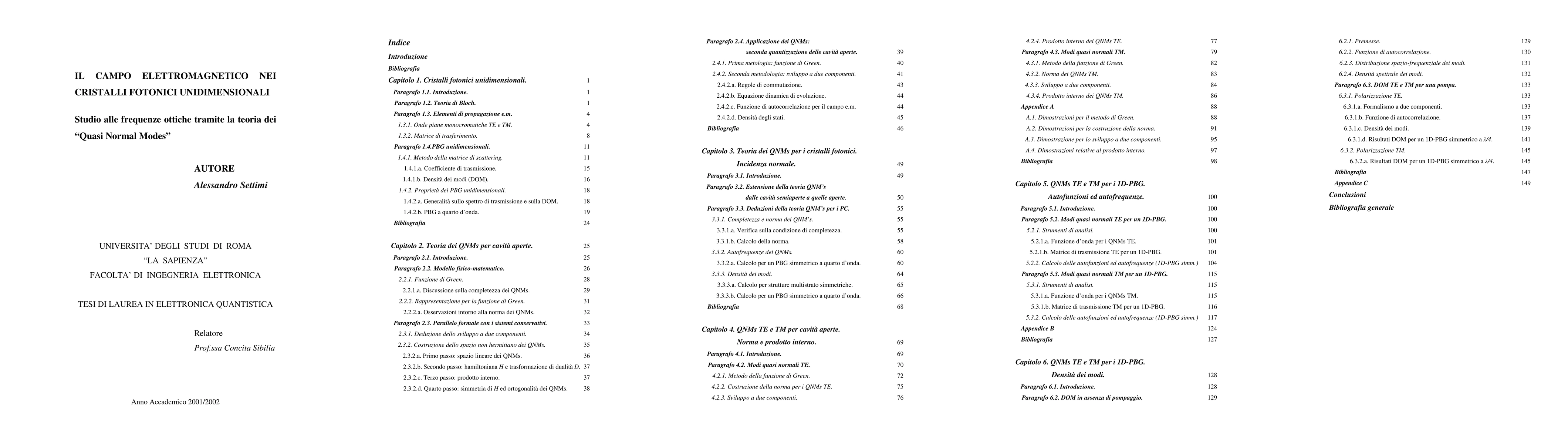 In this thesis, the behavior of the electromagnetic field is studied, at optical frequencies, in the one-dimensional photonic crystals, using the theory of "Quasi-Normal Modes (QNM). The following thesis is inspired by the QNM theory, recently developed for homogeneous cavity open just on one side. It is stressed that any 1D-PBG is an open cavity on both sides which allows the confinement of the e.m. field, but that causes radiation losses; the em field initially present within it, on the passing of time, can only propagate outwards. In general, the 1D-PBG is not a conservative system and the natural evolution of the e.m. field can not be described by a Hermitian operator: in short, a discussion in terms of normal modes of the field radiation is abandoned. The method of QNM uses, as tools of analysis, the Green's function and biorthogonal spaces. The 1D-PBG is studied in a more realistic way : a finite structure, immersed in an unlimited space. The renunciation of energy conservation for the system under consideration has important consequences, both numerical and conceptual: it goes from real autofrequencies to complex quasi-autofrequencies. Moreover, as the operator describing the evolution of space-time is not hermitian, the modes are no longer normal, but quasi-normal: in fact, only under appropriate conditions, they not only provide a basis orthogonal, but their space-time evolution is similar to that of the Hermitian normal modes.