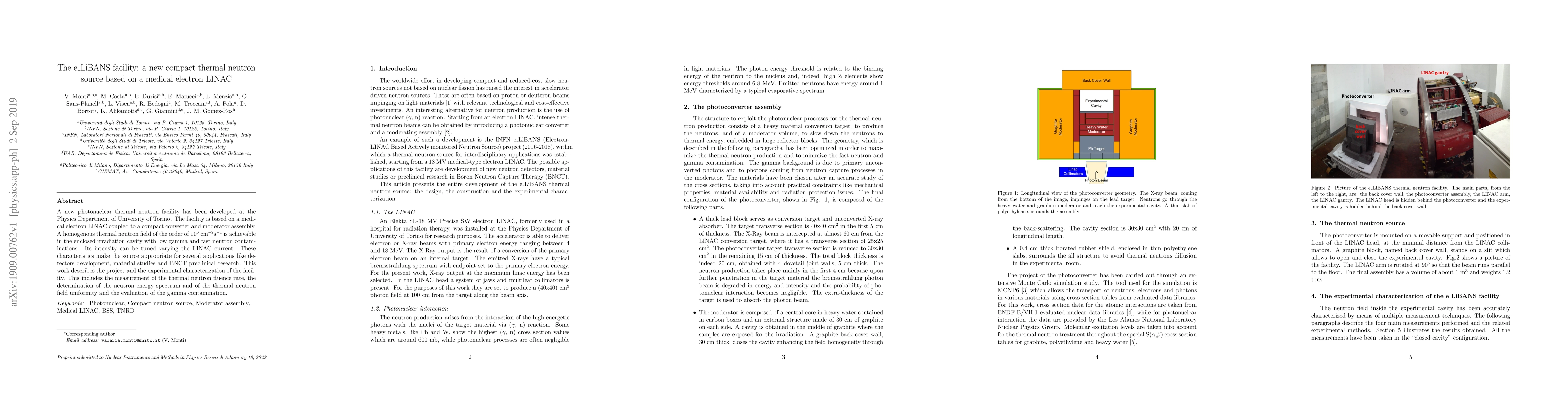 The e_LiBANS facility, based on a medical electron LINAC, provides a compact thermal neutron source with a homogenous neutron field of 10$^6$ cm$^{-2}$s$^{-1}$ and low gamma contamination, suitable for applications in detector development, material studies, and BNCT preclinical research. The facility's intensity is tunable, and its characteristics have been experimentally characterized.