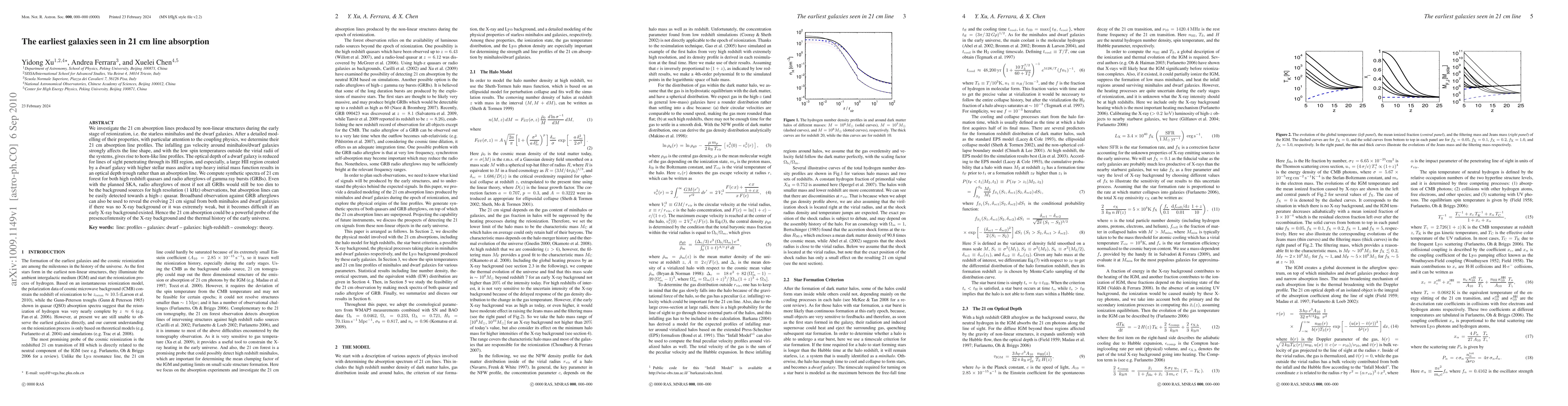 This paper models the 21 cm absorption lines from starless minihalos and dwarf galaxies during early reionization, finding that gas velocity and low spin temperatures create horn-like profiles. It concludes that while SKA may not detect GRB afterglows, 21 cm absorption lines towards high-z quasars can reveal the early universe's X-ray background and thermal history.