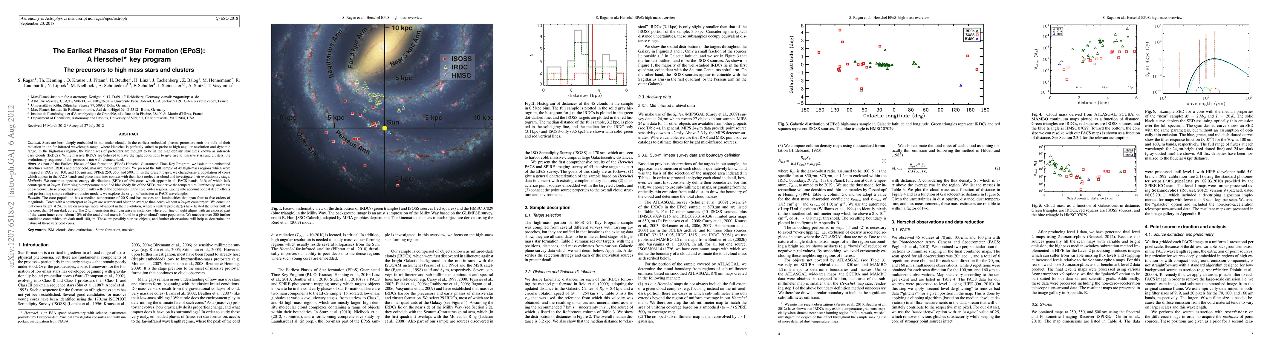 The EPoS Herschel Key Program investigates high-mass star and cluster formation, mapping 45 infrared-dark clouds and characterizing 496 cores. Cores with 24 micron counterparts are typically warmer and more evolved, suggesting central protostars have heated them, while 24 micron-dark cores are likely starless and very cold.