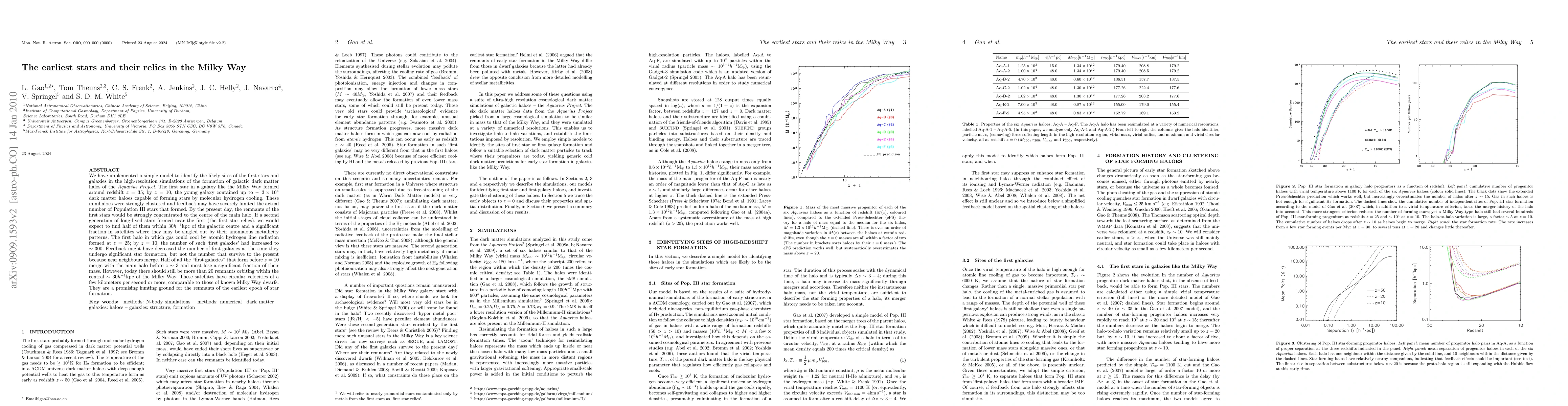This paper models the formation of the first stars and galaxies in the Milky Way, identifying their likely remnants today. It predicts that the first stars formed around z=35, with remnants concentrated near the galactic center, and that over 20 first-galaxy remnants may still orbit within the central ~30kpc/h of the Milky Way.