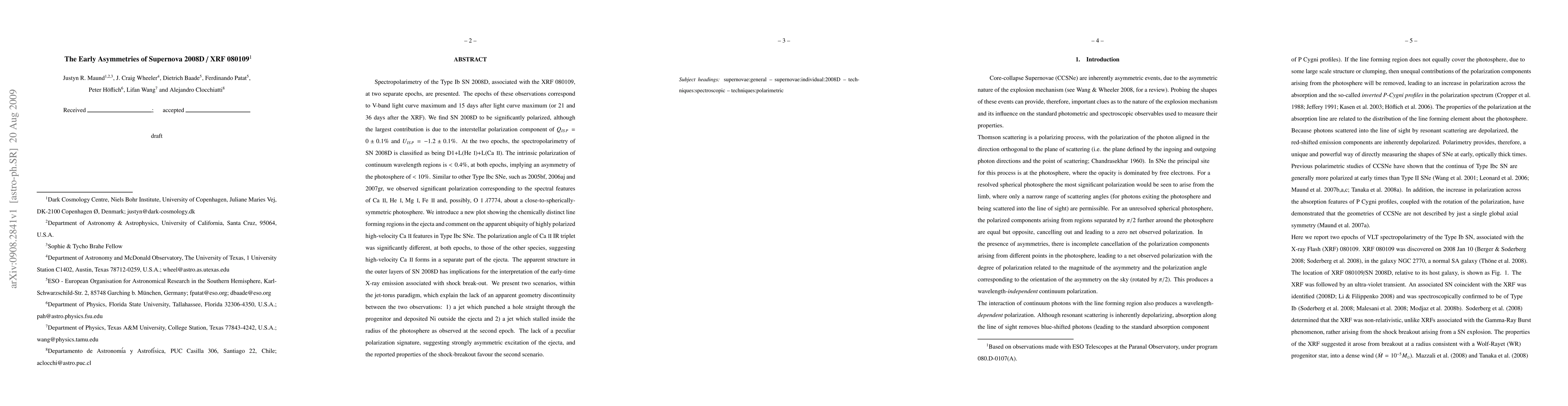 This paper presents spectropolarimetry of Supernova 2008D, revealing significant polarization linked to interstellar components and spectral features of Ca II, He I, and Mg I. The study suggests a close-to-spherically-symmetric photosphere with an asymmetry of less than 10%, and highlights the distinct formation regions of highly polarized high-velocity Ca II features in Type Ibc supernovae.