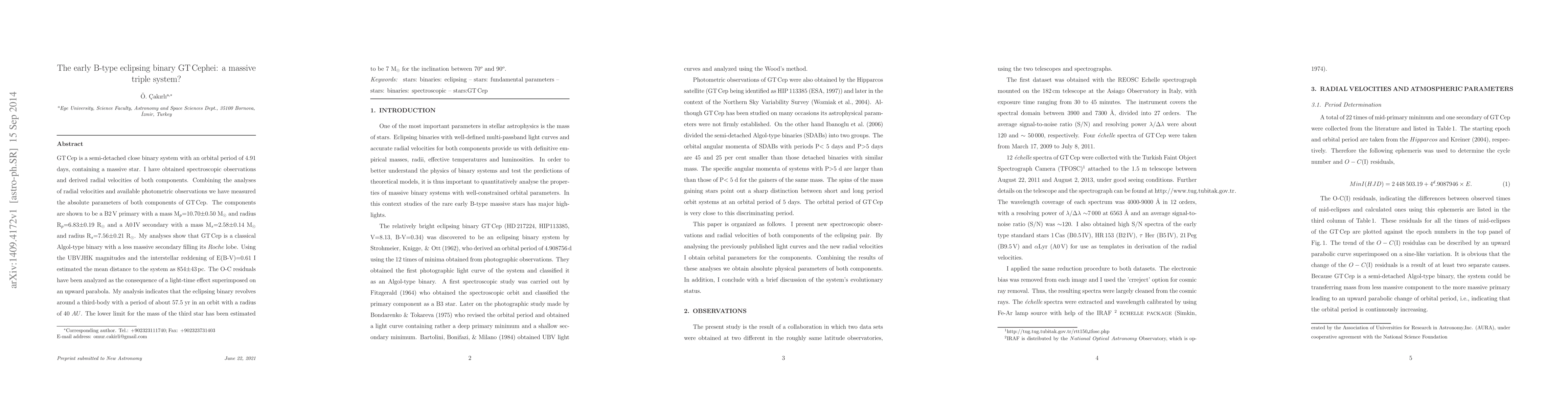 This work distinguishes itself by providing detailed mass and radius measurements for the components of GT Cephei and offering evidence for a third body in an eclipsing binary system, contributing to the understanding of massive binary and triple star systems.