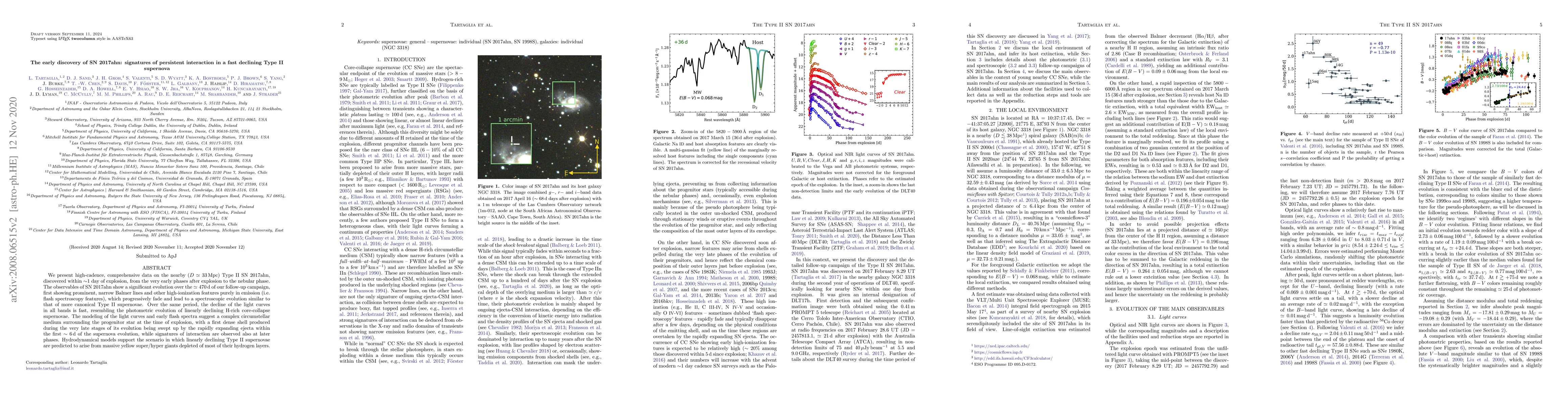 This paper presents detailed observations of the fast-declining Type II supernova SN 2017ahn, revealing early prominent Balmer lines and high-ionization features indicative of persistent interaction with a dense circumstellar medium. The findings suggest that SN 2017ahn likely originated from a massive yellow super/hyper giant with a complex environment.