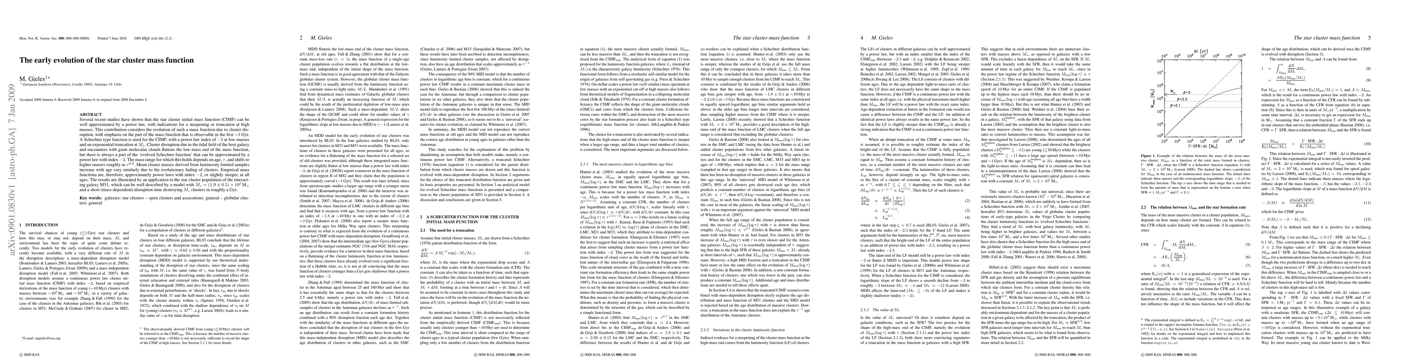 Several recent studies have shown that the star cluster initial mass function (CIMF) can be well approximated by a power law, with indications for a steepening or truncation at high masses. This contribution considers the evolution of such a mass function due to cluster disruption, with emphasis on the part of the mass function that is observable in the first ~Gyr. A Schechter type function is used for the CIMF, with a power law index of -2 at low masses and an exponential truncation at M*. Cluster disruption due to the tidal field of the host galaxy and encounters with giant molecular clouds flattens the low-mass end of the mass function, but there is always a part of the `evolved Schechter function' that can be approximated by a power law with index -2. The mass range for which this holds depends on age, t, and shifts to higher masses roughly as t^0.6. Mean cluster masses derived from luminosity limited samples increase with age very similarly due to the evolutionary fading of clusters. Empirical mass functions are, therefore, approximately power laws with index -2, or slightly steeper, at all ages. The results are illustrated by an application to the star cluster population of the interacting galaxy M51, which can be well described by a model with M*=(1.9+/-0.5)x10^5 M_sun and a short (mass-dependent) disruption time destroying M* clusters in roughly a Gyr.