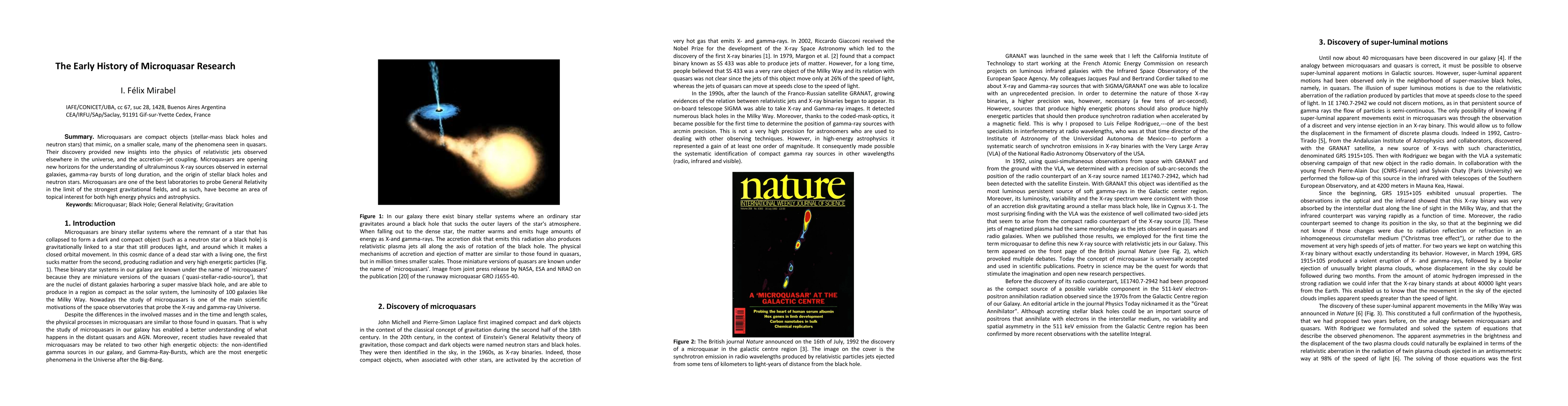 Microquasars are compact objects (stellar-mass black holes and neutron stars) that mimic, on a smaller scale, many of the phenomena seen in quasars. Their discovery provided new insights into the physics of relativistic jets observed elsewhere in the universe, and the accretion--jet coupling. Microquasars are opening new horizons for the understanding of ultraluminous X-ray sources observed in external galaxies, gamma-ray bursts of long duration, and the origin of stellar black holes and neutron stars. Microquasars are one of the best laboratories to probe General Relativity in the limit of the strongest gravitational fields, and as such, have become an area of topical interest for both high energy physics and astrophysics.
