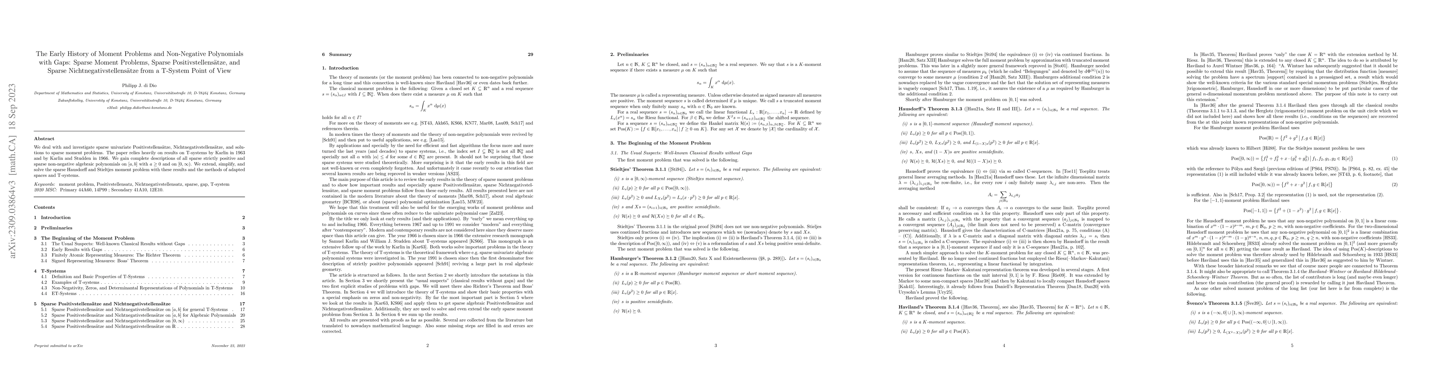 We deal with and investigate sparse univariate Positivstellens\"atze, Nichtnegativstellens\"atze, and solutions to sparse moment problems. The paper relies heavily on results on T-system by Karlin in 1963 and by Karlin and Studden in 1966. We gain complete descriptions of all sparse strictly positive and sparse non-negative algebraic polynomials on $[a,b]$ with $a\geq 0$ and $[0,\infty)$. We extend, simplify, and solve the sparse Hausdorff and Stieltjes moment problem with these results and the methods of adapted spaces and T-systems.