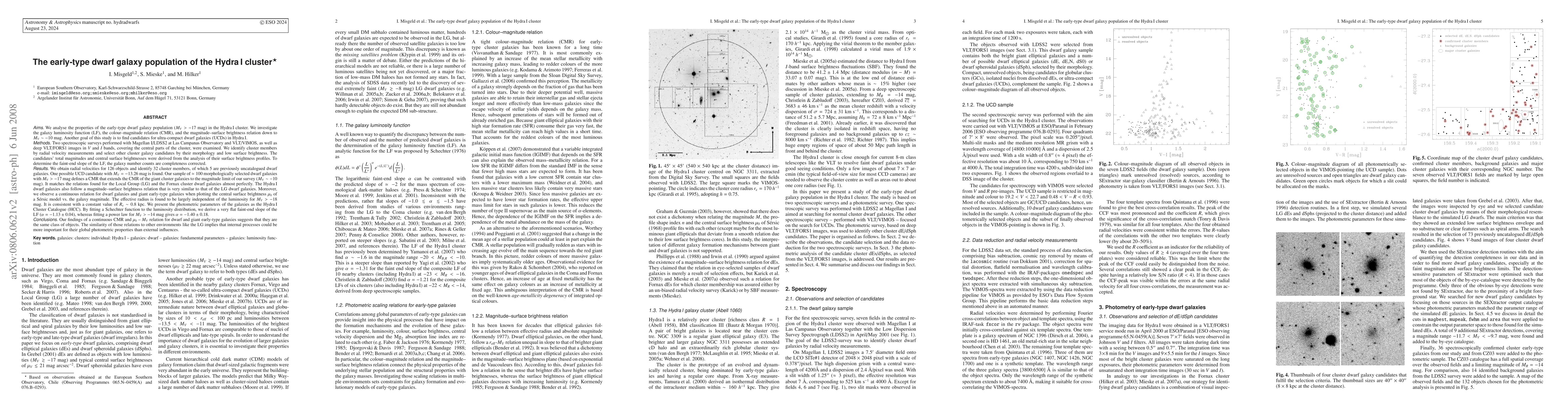 The research presents a comprehensive analysis of the early-type dwarf galaxy population in the Hydra I cluster, providing detailed photometric and spectroscopic data, as well as insights into their color-magnitude and magnitude-surface brightness relations.