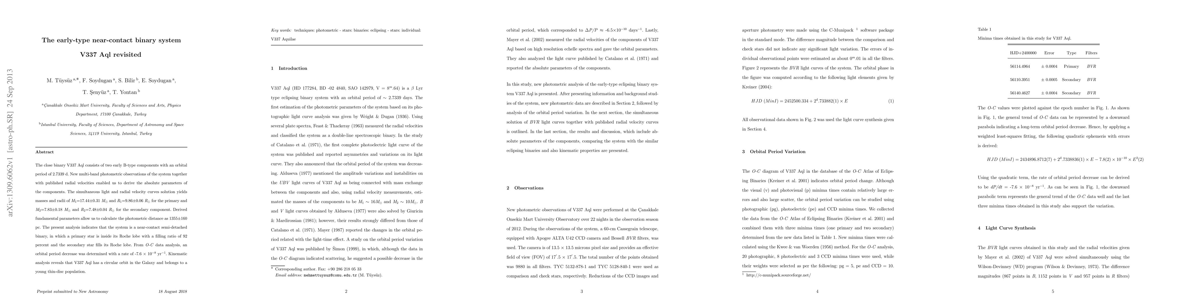 This study revisits the near-contact binary system V337 Aql, revealing the absolute parameters of its early B-type stars through new photometric observations and radial velocity data. The primary component has a mass of 17.44 M$_\odot$ and a radius of 9.86 R$_\odot$, while the secondary has a mass of 7.83 M$_\odot$ and a radius of 7.48 R$_\odot$, indicating the system is a semi-detached binary with an orbital period decrease rate of -7.6 × 10$^{-8}$ yr$^{-1}$.