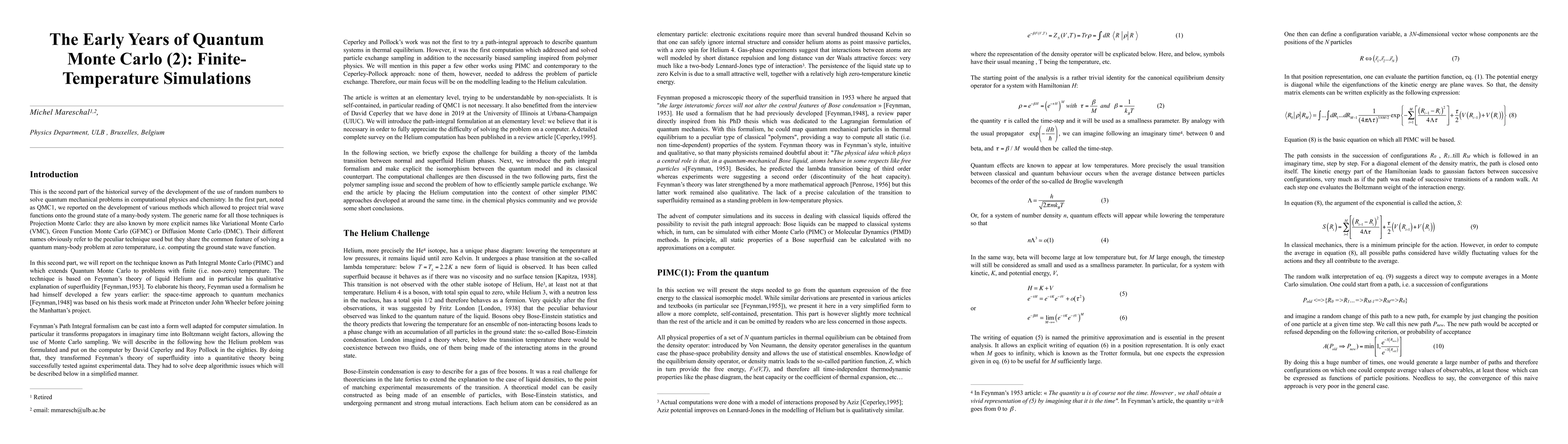 In this article we present the second part of our historical survey on quantum Monte Carlo methods. IWe focus on the simulations performed at a finite temperature and based on the path-integral formulation of quantum mechanics. We introduce the method and insist on the central role played by the description of the transition to superfluidity for Helium 4.
