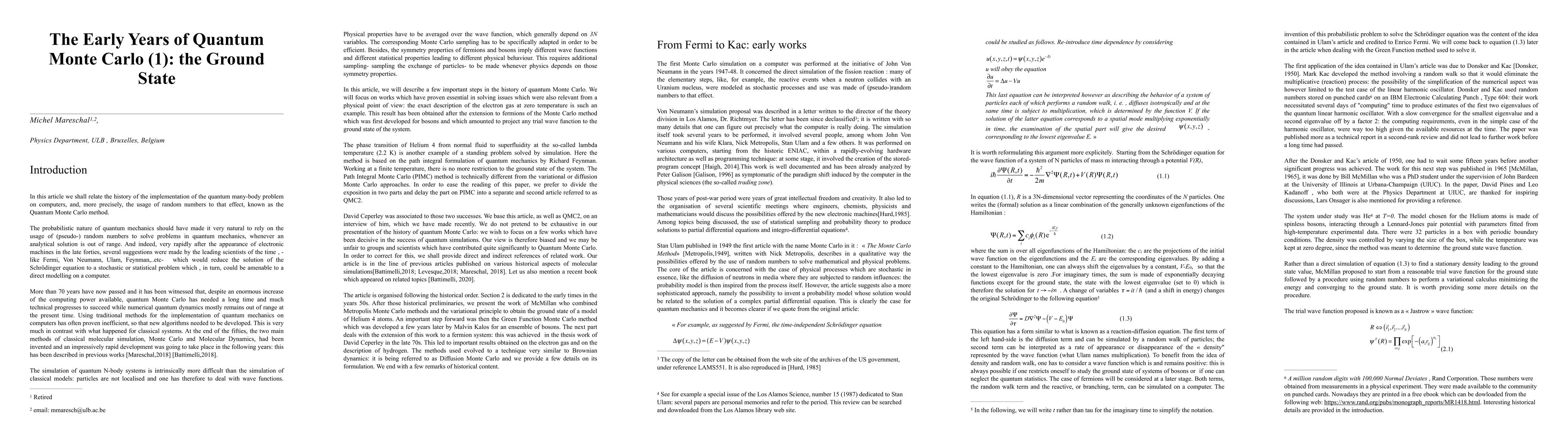 The history of the development of Monte Carlo methods to solve the many-body problem in quantum mechanics is presented. The survey starts with the early attempts with the first available computers just after the war and extends until the years 80s with the celebrated calculation of the electron gas by Ceperley and Alder. Usage is made of an interview of David Ceperley by the author.