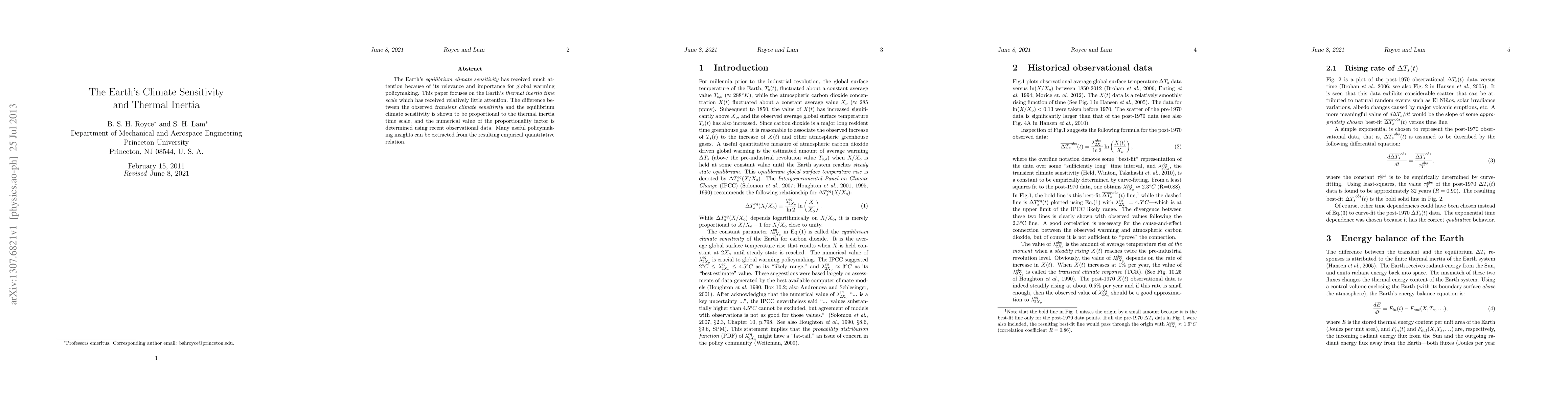 The Earth's equilibrium climate sensitivity has received much attention because of its relevance and importance for global warming policymaking. This paper focuses on the Earth's \emph{thermal inertia time scale} which has received relatively little attention. The difference between the observed transient climate sensitivity and the equilibrium climate sensitivity is shown to be proportional to the thermal inertia time scale, and the numerical value of the proportionality factor is determined using recent observational data. Many useful policymaking insights can be extracted from the resulting empirical quantitative relation.