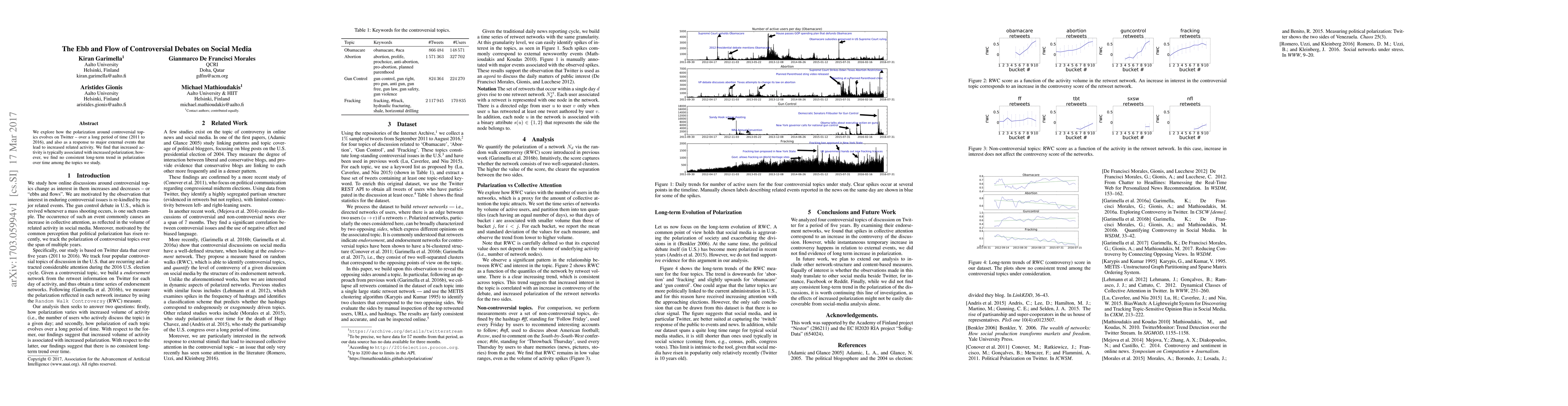 A study of Twitter activity from 2011 to 2016 found that increased debate on controversial topics is often associated with increased polarization, but there is no consistent long-term trend in polarization over time.