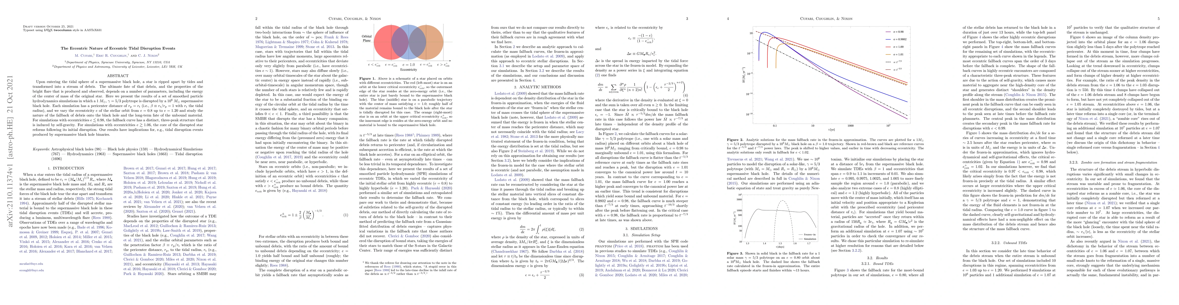This study uses smoothed particle hydrodynamics simulations to explore the behavior of tidal disruption events (TDEs) with varying eccentricities, revealing that fallback curves exhibit a three-peak structure for eccentricities below 0.98 and star core reformation for eccentricities above 1.06. These findings provide insights into the long-term fate of disrupted stellar material and TDEs involving supermassive black hole binaries.