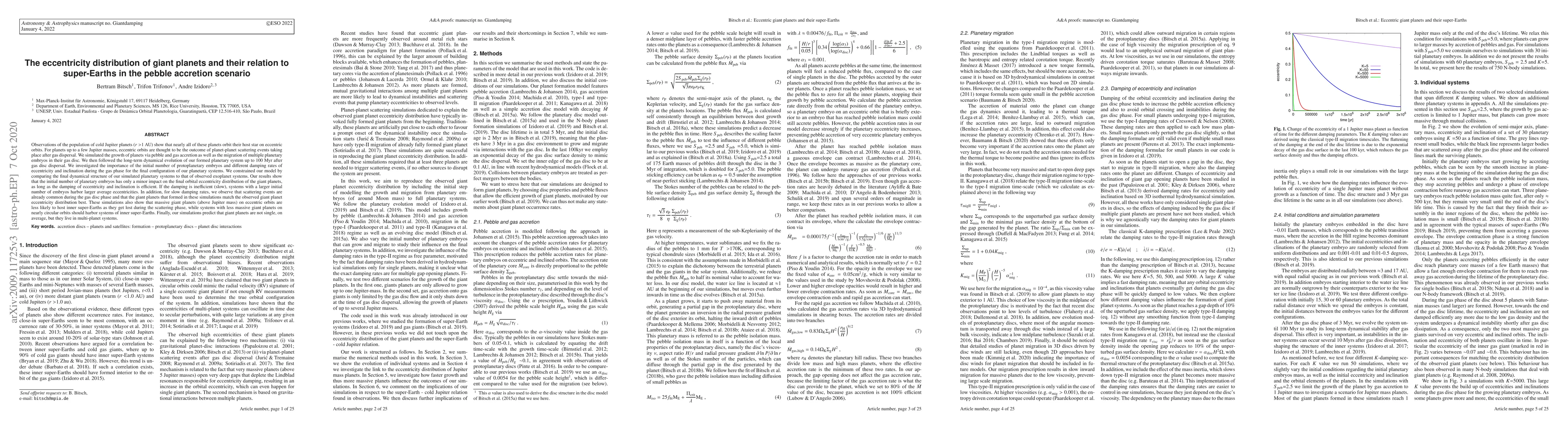 The research combines pebble accretion with gas accretion and migration in a novel way to study the eccentricity distribution of giant planets and their relation to super-Earths.