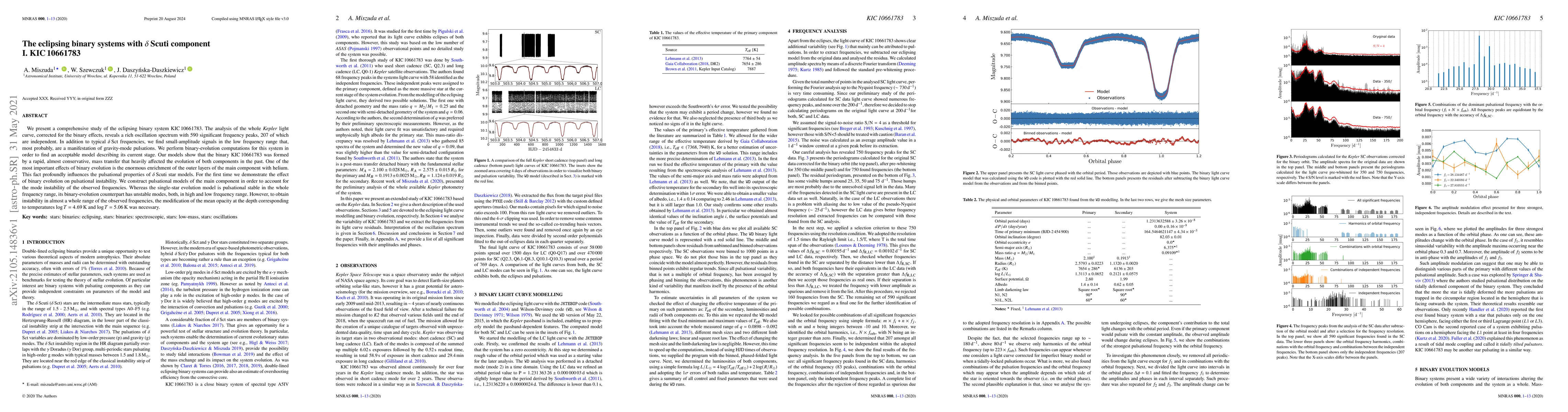 We present a comprehensive study of the eclipsing binary system KIC 10661783. The analysis of the whole Kepler light curve, corrected for the binary effects, reveals a rich oscillation spectrum with 590 significant frequency peaks, 207 of which are independent. In addition to typical $\delta$ Sct frequencies, we find small-amplitude signals in the low-frequency range that, most probably, are a manifestation of gravity-mode pulsations. We perform binary-evolution computations for this system in order to find an acceptable model describing its current stage. Our models show that the binary KIC 10661783 was formed by a rapid, almost conservative, mass transfer that heavily affected the evolution of both components in the past. One of the most important effects of binary evolution is the enormous enrichment of the outer layers of the main component with helium. This fact profoundly influences the pulsational properties of $\delta$ Scuti star models. For the first time, we demonstrate the effect of binary evolution on pulsational instability. We construct pulsational models of the main component in order to account for the mode instability of the observed frequencies. Whereas the single-star evolution model is pulsational stable in the whole frequency range, its binary-evolution counterpart has unstable modes, both, in high and low-frequency range. However, to obtain instability in almost a whole range of the observed frequencies, the modification of the mean opacity at the depth corresponding to temperatures log T = 4.69 K and log T = 5.06 K was necessary.