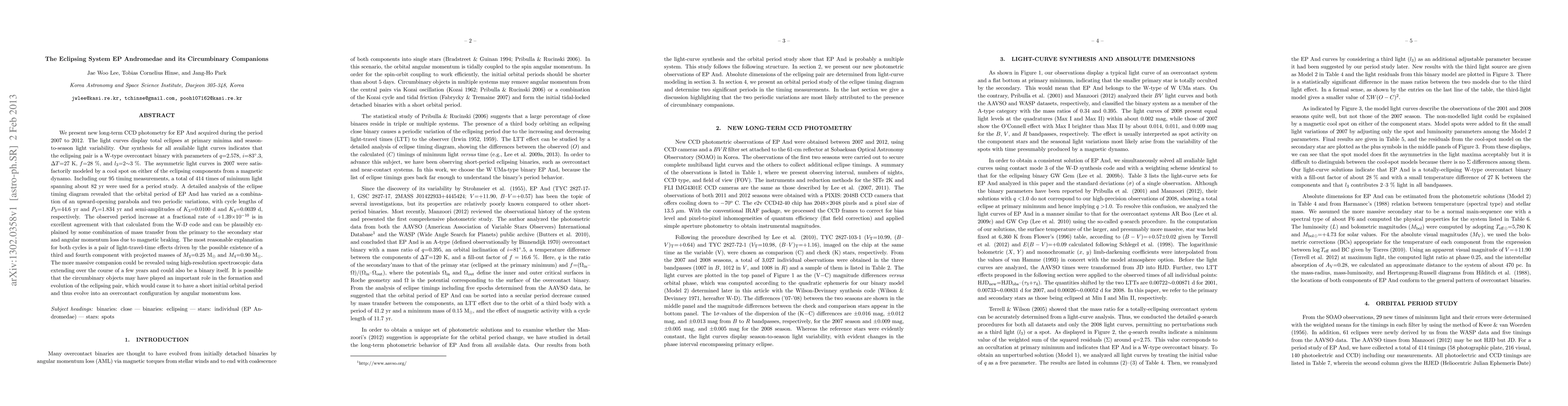 We present new long-term CCD photometry for EP And acquired during the period 2007 to 2012. The light curves display total eclipses at primary minima and season-to-season light variability. Our synthesis for all available light curves indicates that the eclipsing pair is a W-type overcontact binary with parameters of q=2.578, i=83.3 deg, $\Delta T$=27 K, f=28 %, and l3=2~3 %. The asymmetric light curves in 2007 were satisfactorily modeled by a cool spot on either of the eclipsing components from a magnetic dynamo. Including our 95 timing measurements, a total of 414 times of minimum light spanning about 82 yr were used for a period study. A detailed analysis of the eclipse timing diagram revealed that the orbital period of EP And has varied as a combination of an upward-opening parabola and two periodic variations, with cycle lengths of P3=44.6 yr and P4=1.834 yr and semi-amplitudes of K3=0.0100 d and K4=0.0039 d, respectively. The observed period increase at a fractional rate of +1.39x10^{-10} is in excellent agreement with that calculated from the W-D code and can be plausibly explained by some combination of mass transfer from the primary to the secondary star and angular momentum loss due to magnetic braking. The most reasonable explanation for both cycles is a pair of light-travel-time effects driven by the possible existence of a third and fourth component with projected masses of M3=0.25 Msun and M4=0.90 Msun. The more massive companion could be revealed using high-resolution spectroscopic data extending over the course of a few years and could also be a binary itself. It is possible that the circumbinary objects may have played an important role in the formation and evolution of the eclipsing pair, which would cause it to have a short initial orbital period and thus evolve into an overcontact configuration by angular momentum loss.