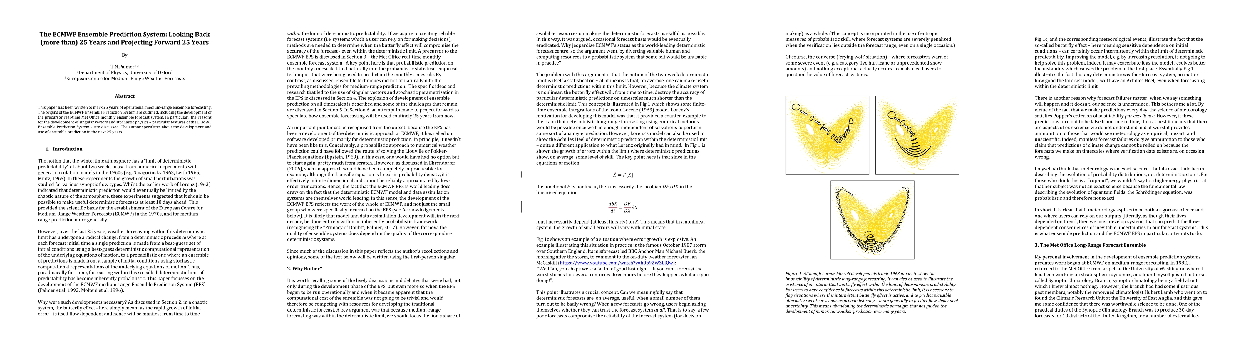 The ECMWF Ensemble Prediction System celebrates 25 years of medium-range ensemble forecasting with a retrospective overview of its development and future projections. The paper discusses the system's key features and speculates on the next 25 years of ensemble prediction advancements.