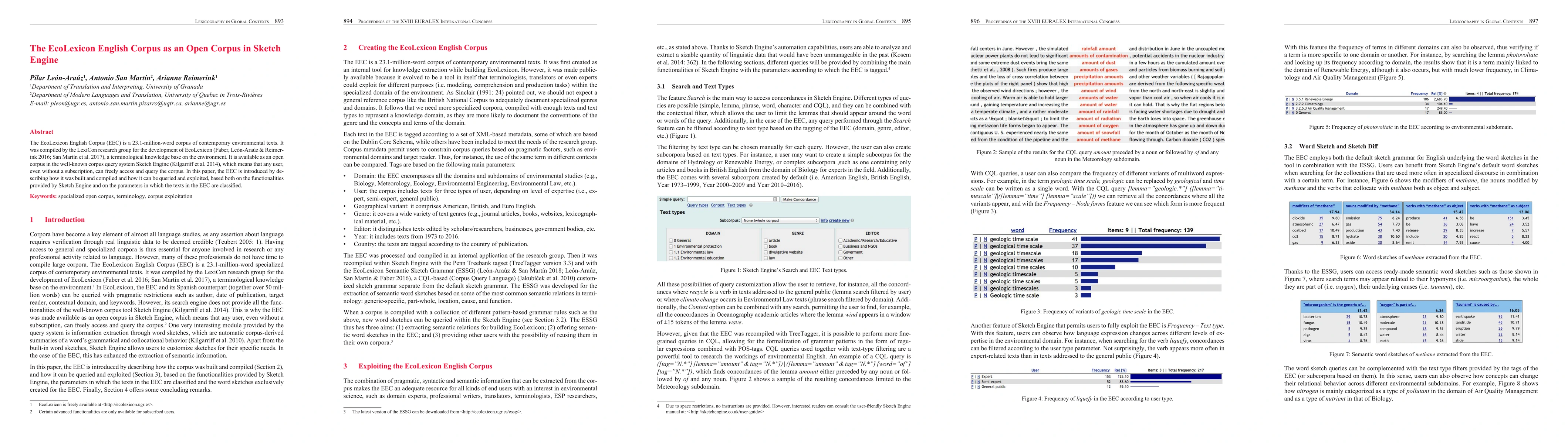 The EcoLexicon English Corpus is a 23.1-million-word environmental texts corpus available for free querying in Sketch Engine, providing insights into contemporary environmental language.