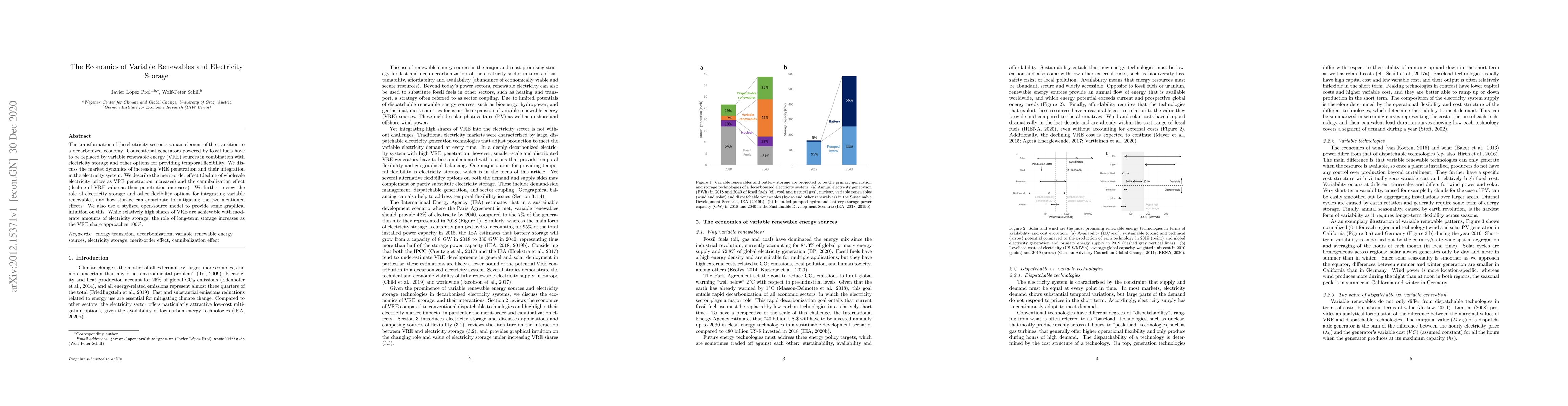 This paper examines the economics of integrating variable renewable energy (VRE) into the electricity sector, highlighting the merit-order and cannibalization effects. It underscores the crucial role of electricity storage in mitigating these effects and achieving high VRE penetration.