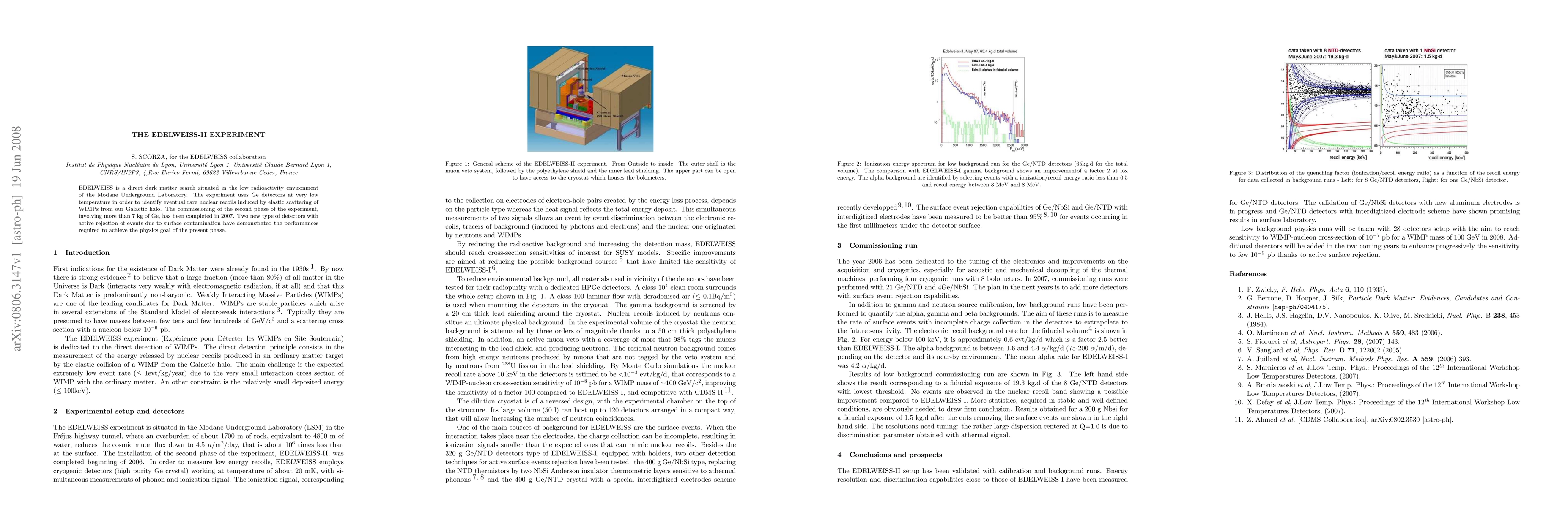 The EDELWEISS-II experiment uses Ge detectors at low temperature to search for rare nuclear recoils from WIMP scattering in the Galactic halo. It has successfully commissioned with over 7 kg of Ge and demonstrated detection capabilities.
