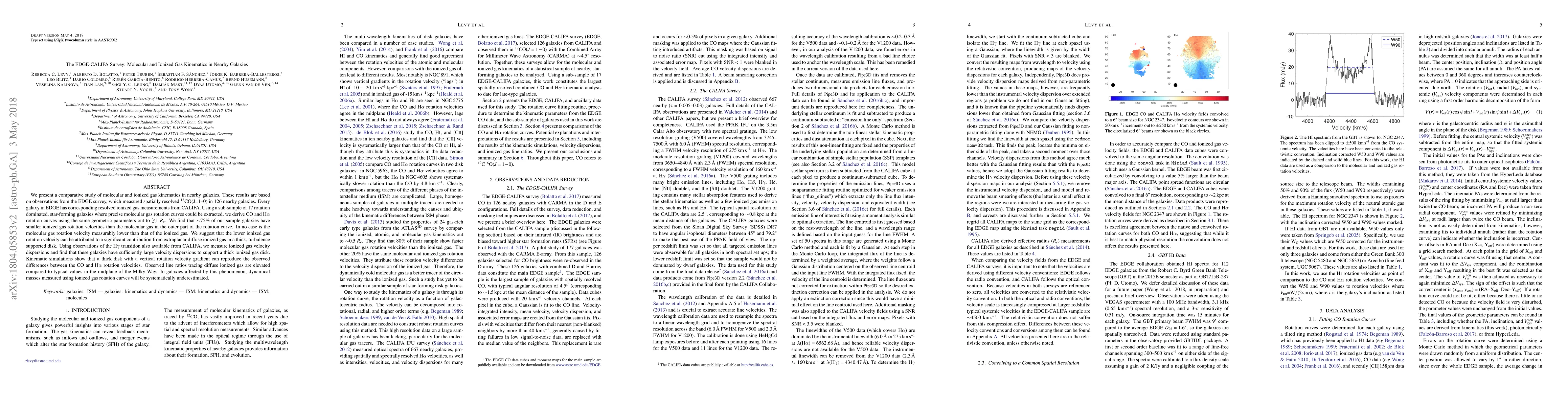 This study compares molecular and ionized gas kinematics in nearby galaxies using EDGE and CALIFA data. It finds that ionized gas has lower rotation velocities than molecular gas in the outer regions, suggesting the presence of extraplanar diffuse ionized gas in a turbulence-supported thick disk.