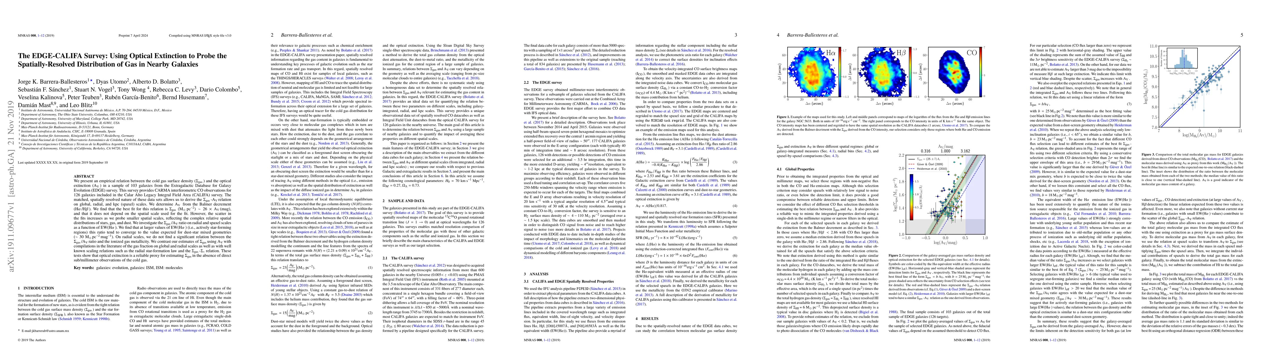 The EDGE-CALIFA Survey establishes an empirical relation between cold gas surface density and optical extinction, finding a consistent $\Sigma_{\rm gas} \sim 26 \times {\rm A_V}$ across various spatial scales, though with increasing scatter at smaller scales. This method proves reliable for estimating gas density in star-forming regions.