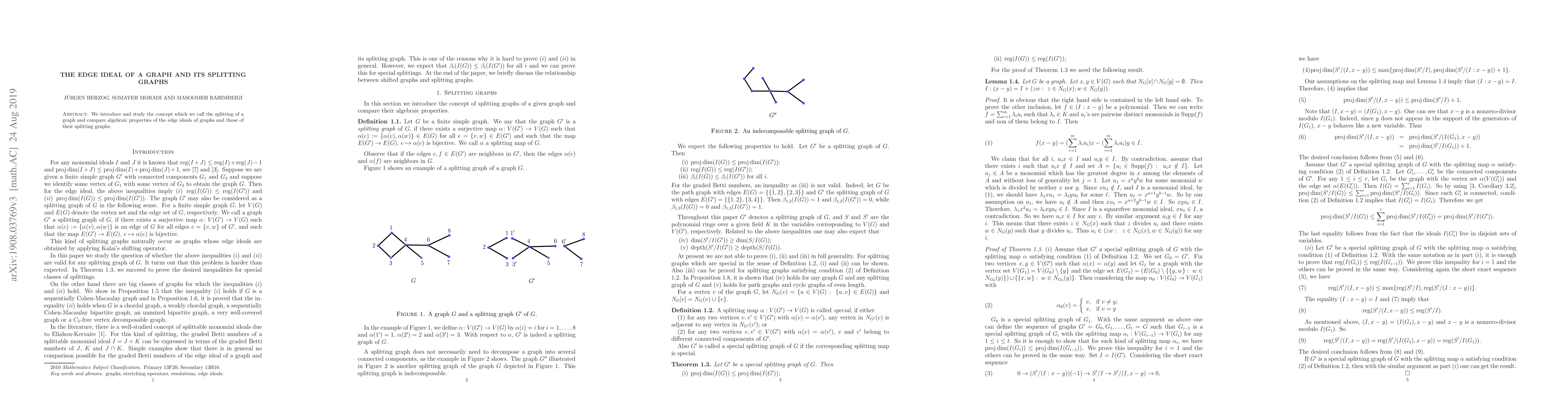 This research explores the concept of 'splitting' graphs and examines how the algebraic properties of edge ideals in graphs change with their splitting graphs, providing insights into graph theory and commutative algebra.