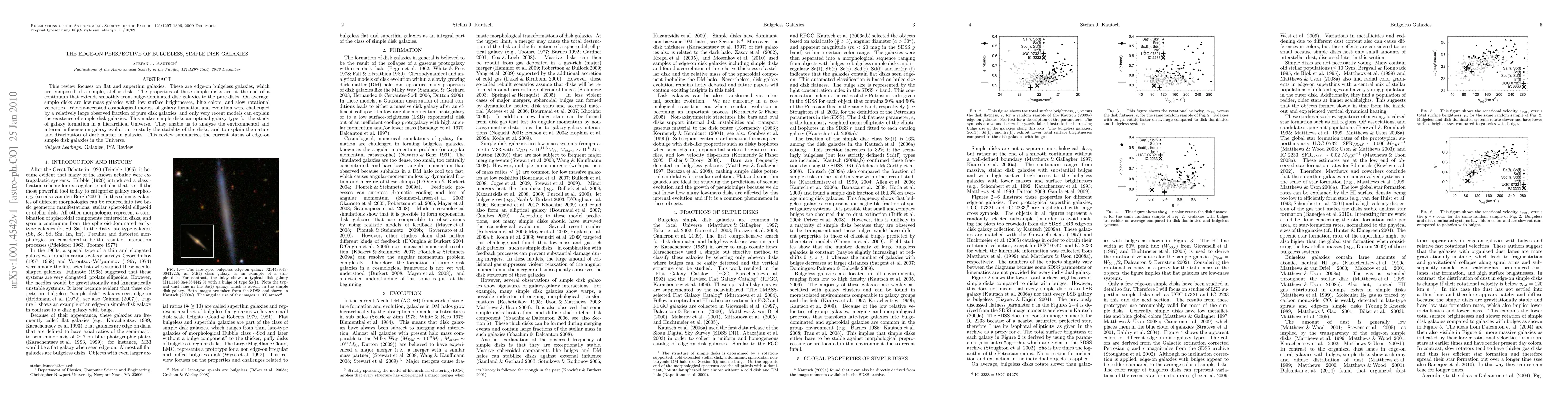 This review examines edge-on, bulgeless, simple disk galaxies characterized by low mass, low surface brightness, and slow rotation, challenging traditional cosmological models. It highlights their importance in studying galaxy formation, evolution, and the influence of dark matter.
