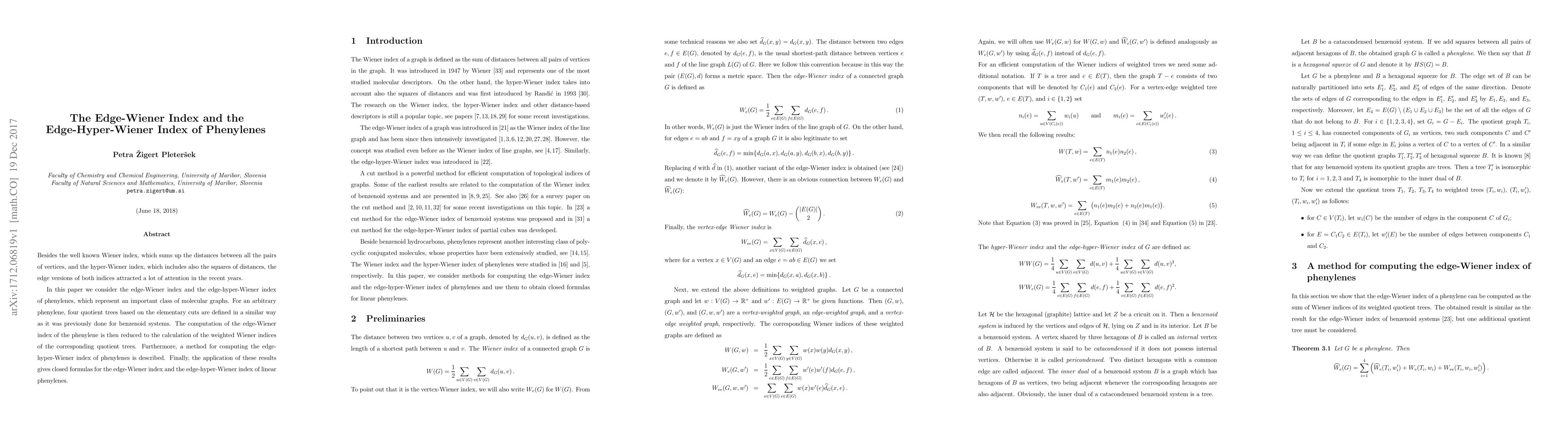 This paper explores the edge-Wiener index and the edge-hyper-Wiener index for phenylenes, an important class of molecular graphs. It provides methods to compute these indices by reducing their calculation to weighted Wiener indices of quotient trees derived from elementary cuts.