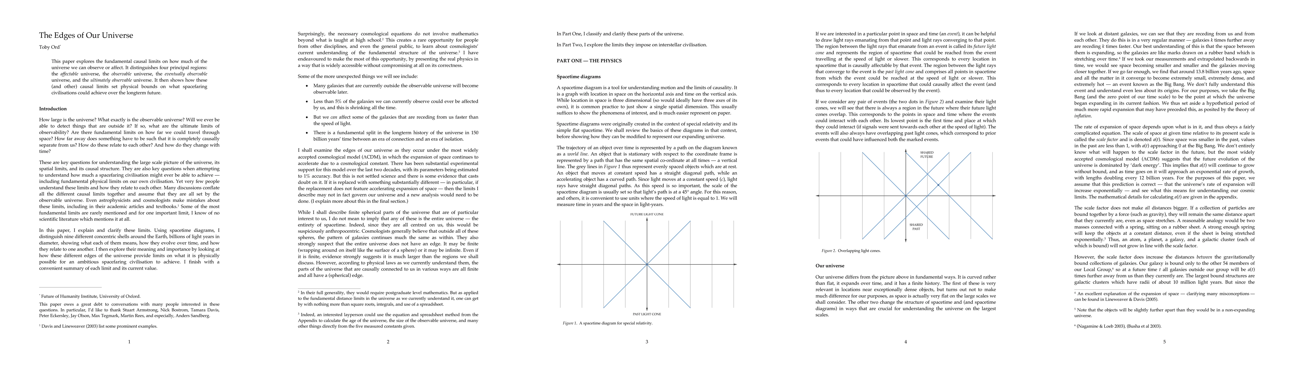 This paper investigates the causal constraints on the observable and affectable universe, categorizing it into four regions, and discusses how these limits shape the potential achievements of spacefaring civilizations in the long term.