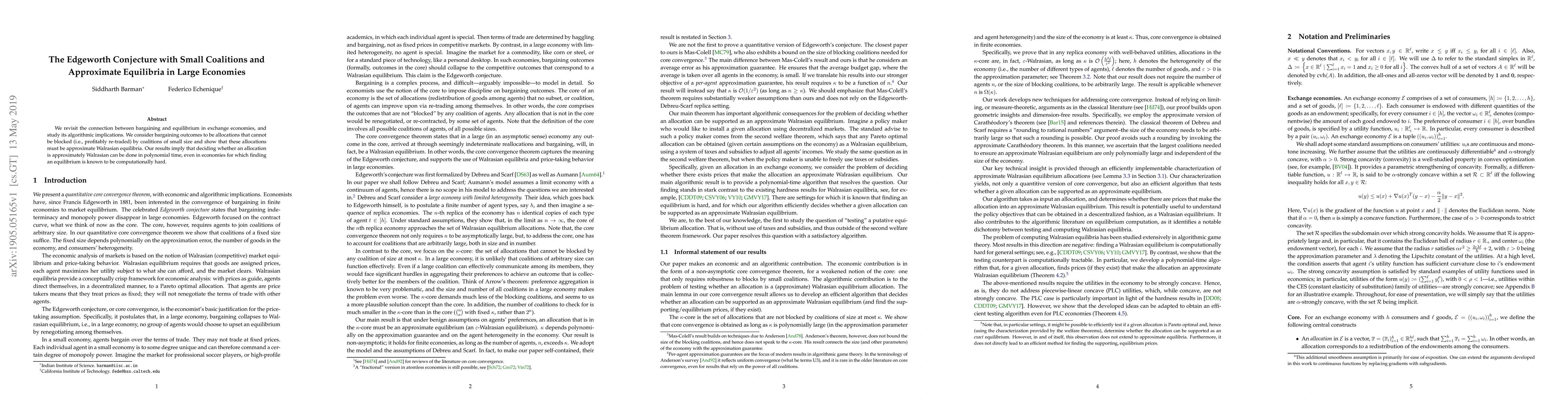 This paper shows that allocations in large economies can only be stable if they approximate Walrasian equilibria, even with small coalitions, and provides a polynomial-time method to check for this.