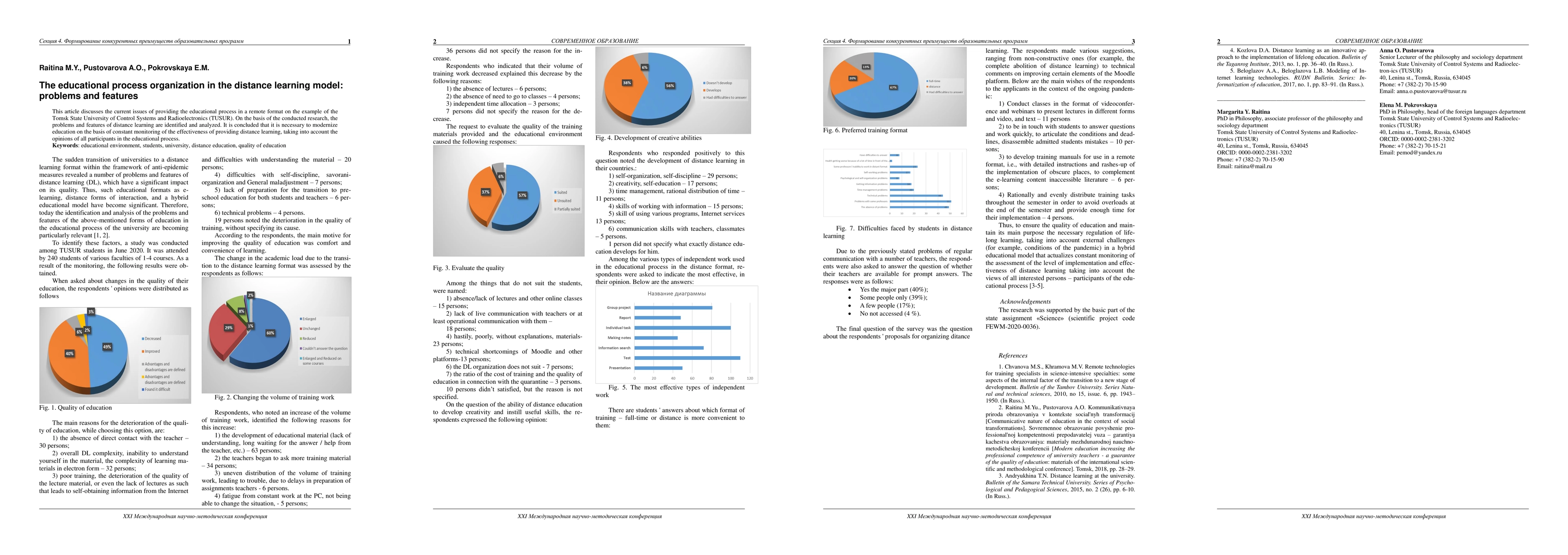 This article discusses the current issues of providing the educational process in a remote format on the example of the Tomsk State University of Control Systems and Radioelectronics (TUSUR). On the basis of the conducted re-search, the problems and features of distance learning are identified and analyzed. It is concluded that it is neces-sary to modernize education on the basis of constant monitoring of the effectiveness of providing distance learn-ing, taking into account the opinions of all participants in the educational process.
